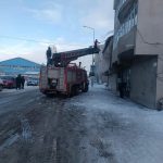 Yüksek binaların çatı ve saçaklarında oluşan buz kütleleri, itfaiye araçları ve ekipmanlarıyla kontrollü şekilde temizlendi. Çalışmalar sırasında yayaların ve işyeri sahiplerinin zarar görmemesi için gerekli güvenlik önlemleri alınırken, riskli alanlar kısa süreli olarak trafiğe kapatıldı.