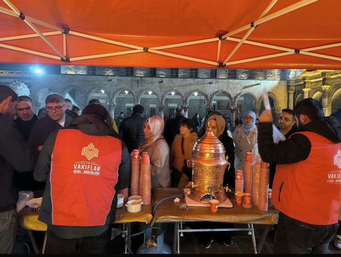 Diyarbakır Vakıflar Bölge Müdürlüğü tarafından Diyarbakır, Mardin, Batman, Bingöl ve Sultan Şeyh Musa Ezzuli Külliyesinde Regaib Kandili dolayısıyla vatandaşlara salep ikram edildi.