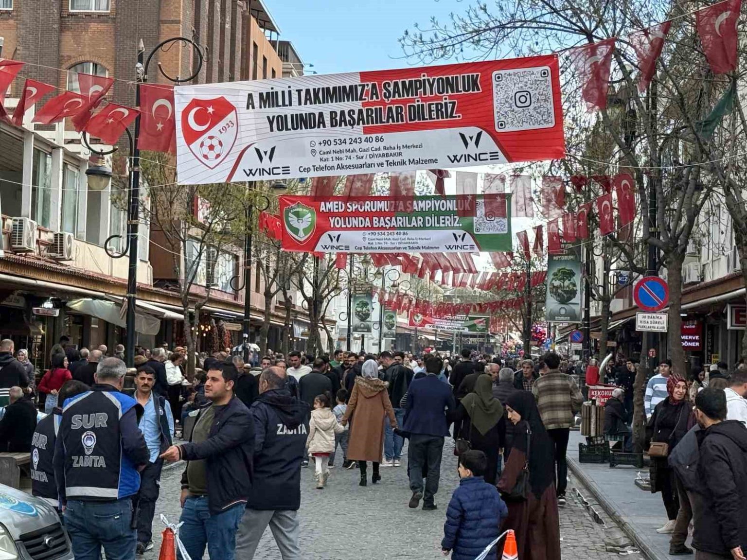 Diyarbakır’ın Sur ilçesinde esnaf, A Milli Futbol Takımına destek amacıyla Gazi Caddesi’nin farklı noktalarına pankartlar astı.