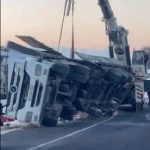 Diyarbakır’da tır devrildi, yol ulaşıma kapandı
