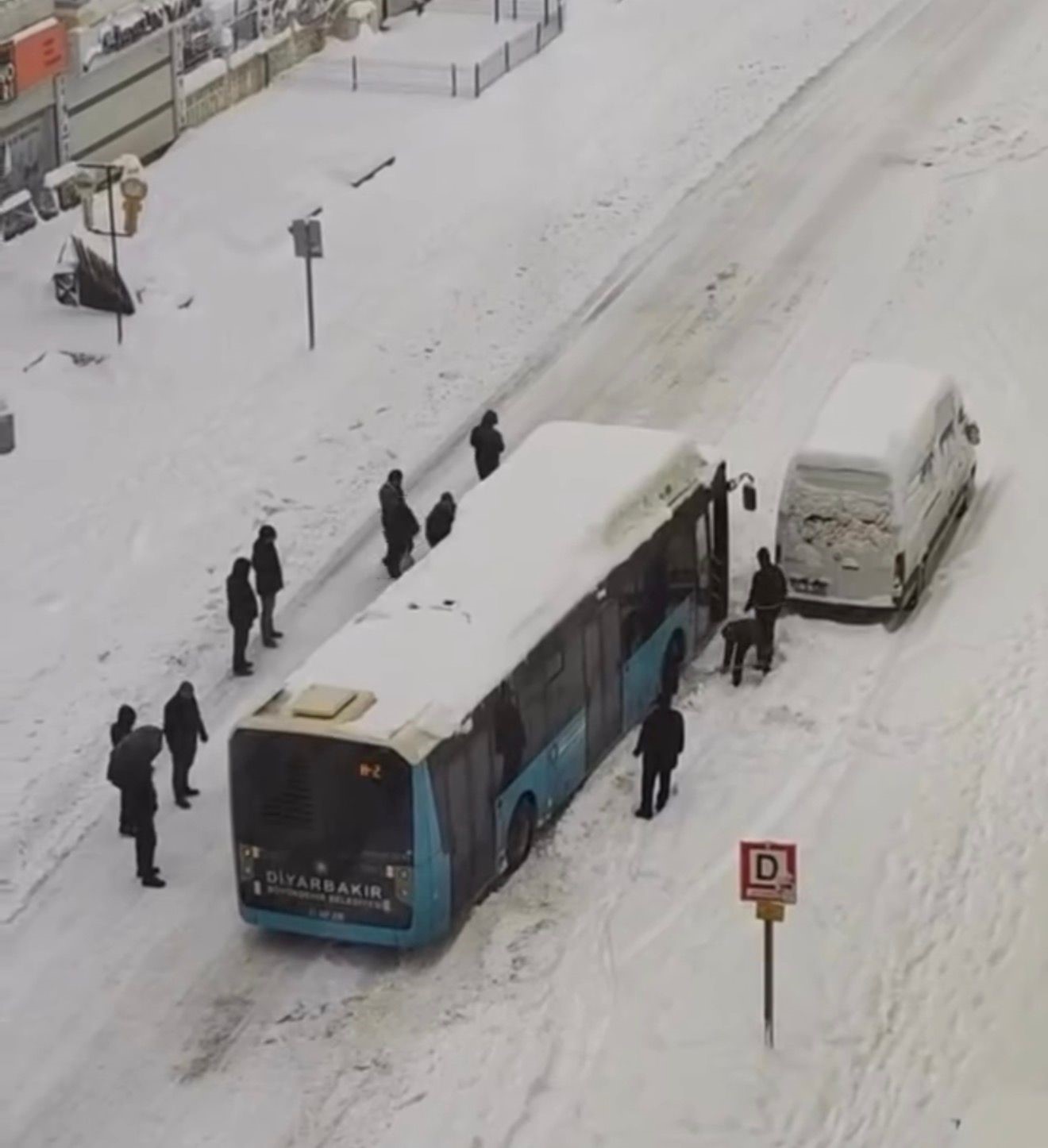 Diyarbakır’da etkisini sürdüren yoğun kar yağışı hayatı olumsuz etkilemeye devam ediyor. Kent genelinde birçok cadde ve sokak ulaşıma kapanırken, yolda kalan halk otobüslerine vatandaşlar yardım etti.