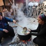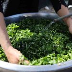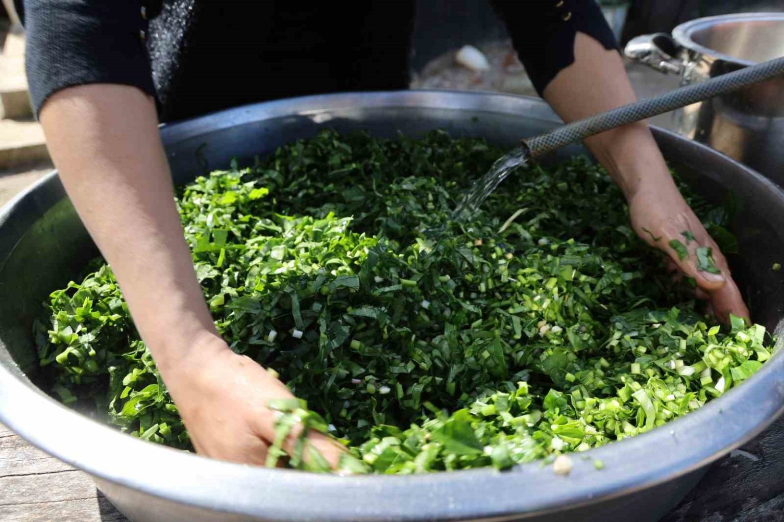 Adana’nın Kozan ilçesinde kadınlar, iftar sofraları için bahçelerden topladıkları yılan pancarı otunu imece usulü hazırlıyor. İncecik doğranan ot; yoğurt, nohut, yarma ve limonla karıştırılıp üzeri unla kapatılarak 24 saat bekletiliyor. Zehri alınan ot, ardından odun ateşinde kara kazanda yaklaşık 4 saat pişirilerek sofralarda yerini alıyor.