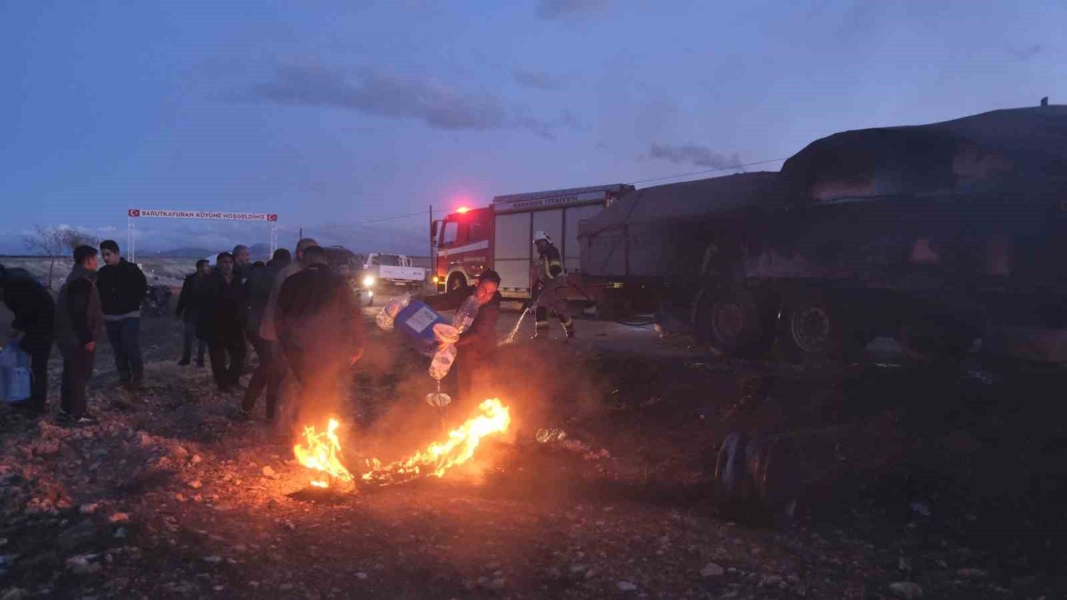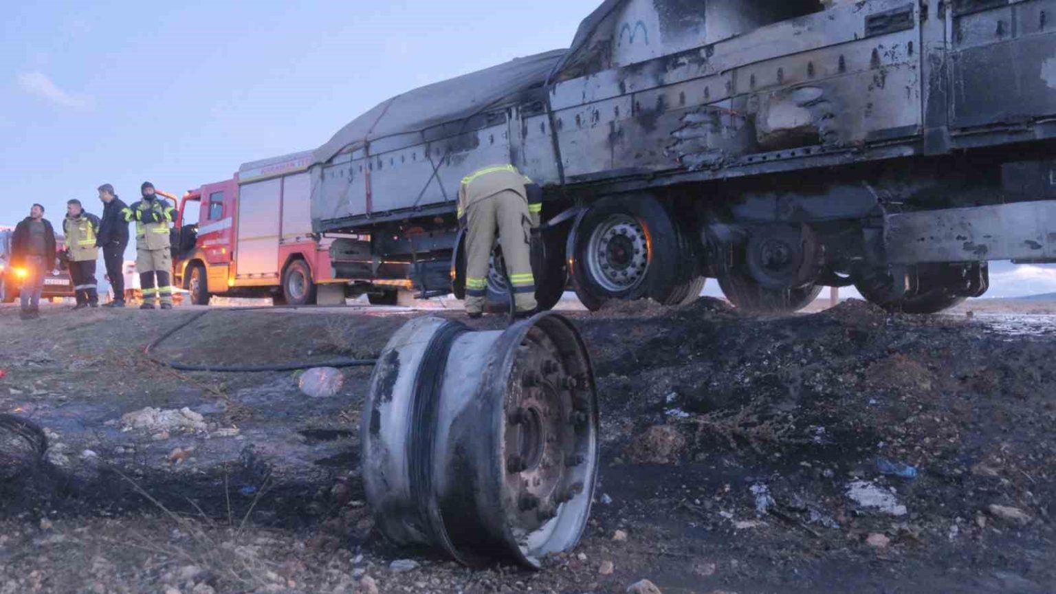 Olay anını anlatan sürücü Taner Gönül, “Teker bilyesi bozulunca ısındı, lastik tutuştu ve ardından patladı. Köylü arkadaşlar sağ olsun, hepsi yardıma geldi. Ben de köylüyüm. Elimize ne geçtiyse; kürekle, suyla müdahale ettik. Köylülerin sayesinde yangını söndürdük. Ereğli’den Karaman’a inşaat malzemesi götürüyordum” dedi.