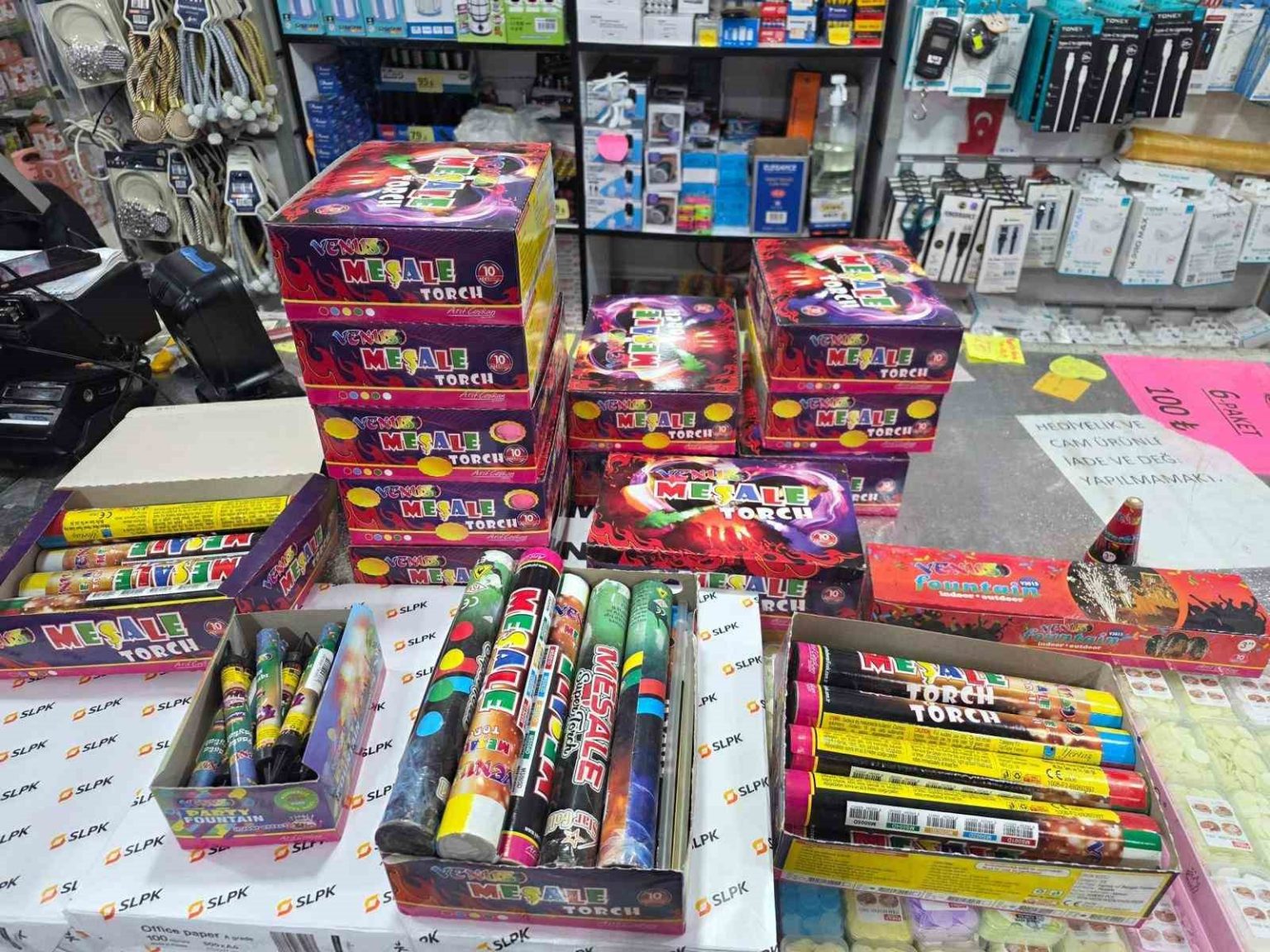 Yapılan denetimde 137 işyeri kontrol edildi, 144 kişinin kimlik sorgusu yapıldı. 1 işyerinde toplam 477 adet meşale, 11 adet volkan ve 70 adet maytap ele geçirildi.