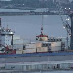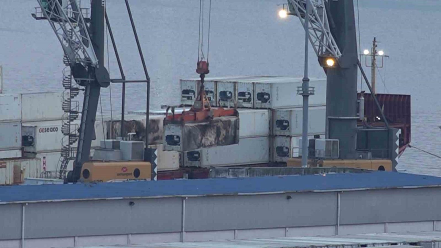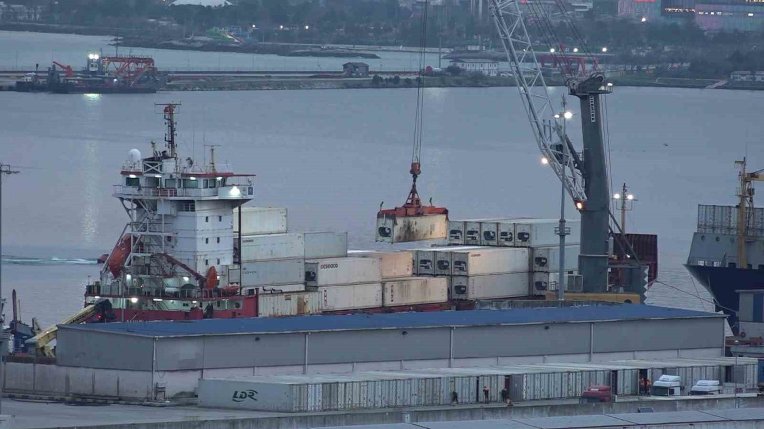 Kamerun bayraklı “Aurelia” isimli konteyner gemisi, Karadeniz’de dron saldırısına uğramasının ardından Samsun Limanı’na demirledi.