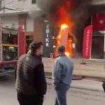 Dükkan önünde başlayan yangın akülerin patlamasıyla büyüdü