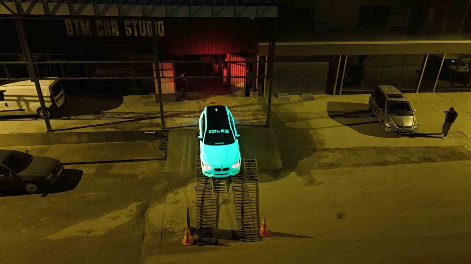 Eskişehir’de 16 yıldır boya koruma filmi kaplaması yapan esnafın özel malzeme ile kapladığı otomobil gündüzleri beyaz iken geceleri yeşil bir renge bürünüp adeta ışık kaynağı gibi parlıyor. Bu özelliğin dünyada 7 araçta olduğunu iddia eden esnaf, kapladığı araçla dikkatleri üzerine çekiyor.