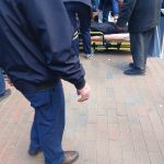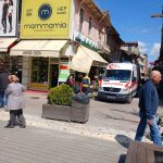 Eskişehir’de düşerek başını yere çarpan adam, sağlık ekiplerince ambulansta tedavi edildi.