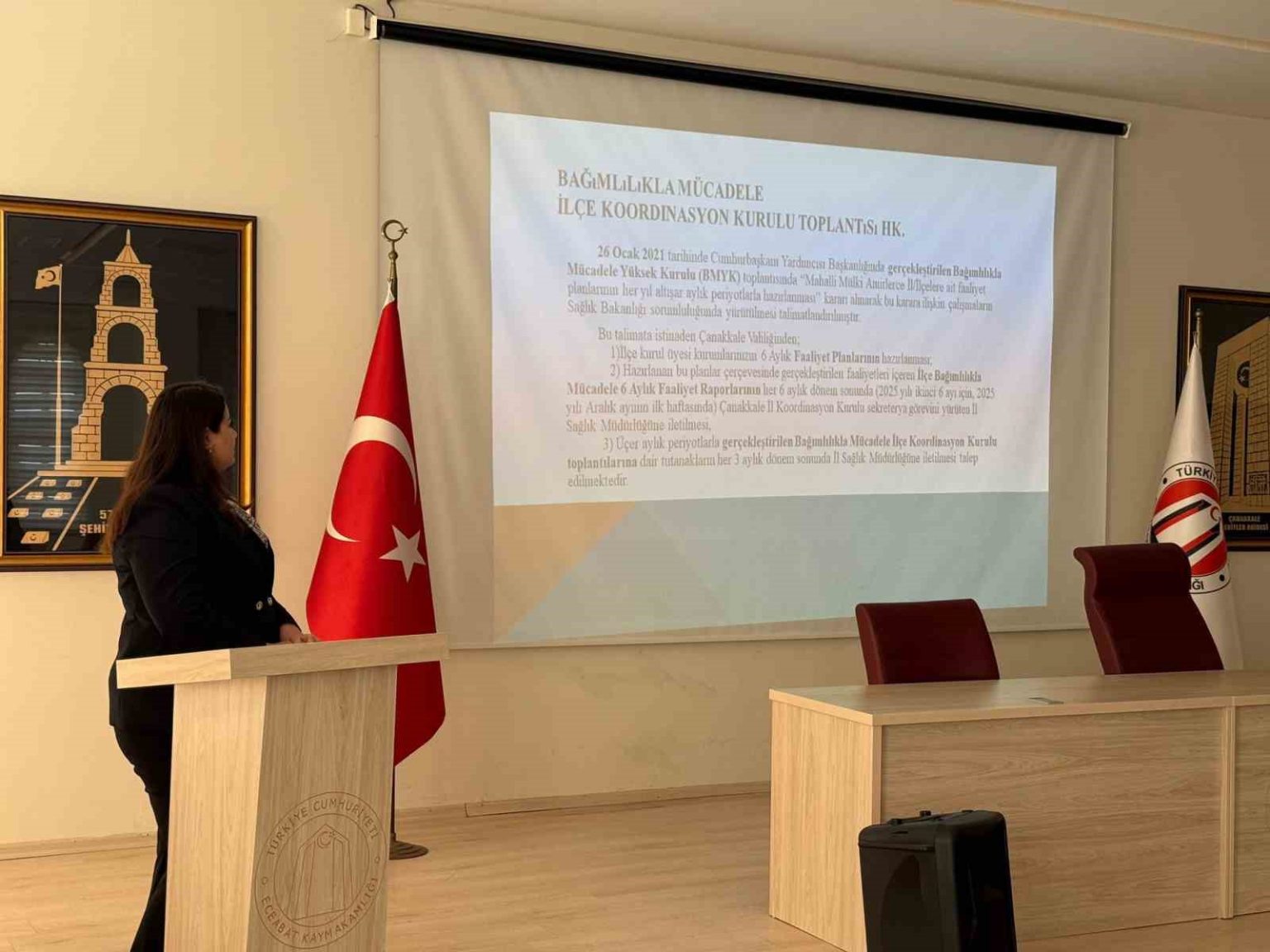 Eceabat ilçesinde, Kaymakam Kerem Yenigün başkanlığında ’Bağımlılıkla Mücadele İlçe Koordinasyon Kurulu Toplantısı’ gerçekleştirildi. Toplantıda, ilçede devam eden bağımlılıkla mücadele çalışmaları, bağımlılıkla mücadele ve zararlı madde kullanımının önlenmesine yönelik konular konuşuldu.