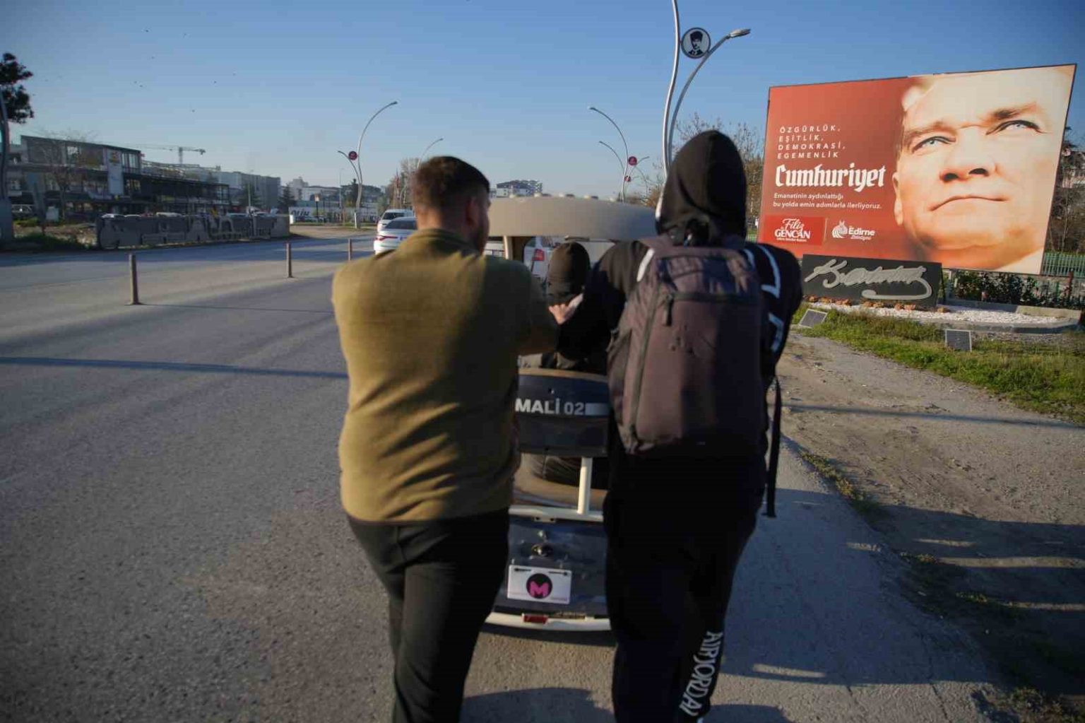 Edirne’de iki lise öğrencisi, aküsü bittiği için yolda kalan yaşlı vatandaşın engelli aracını kilometrelerce iterek evine ulaşmasını sağladı. Gençlerin sergilediği bu duyarlı davranış takdir topladı.