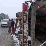 Edirne’de kar yağışı ve fırtına sebebiyle tır devrildi