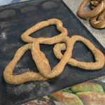 Edirne’de bir fırın işletmesi tarafından 14 Şubat Sevgililer Günü’ne özel hazırlanan kalp şeklindeki simitler vatandaşlardan ilgi gördü.