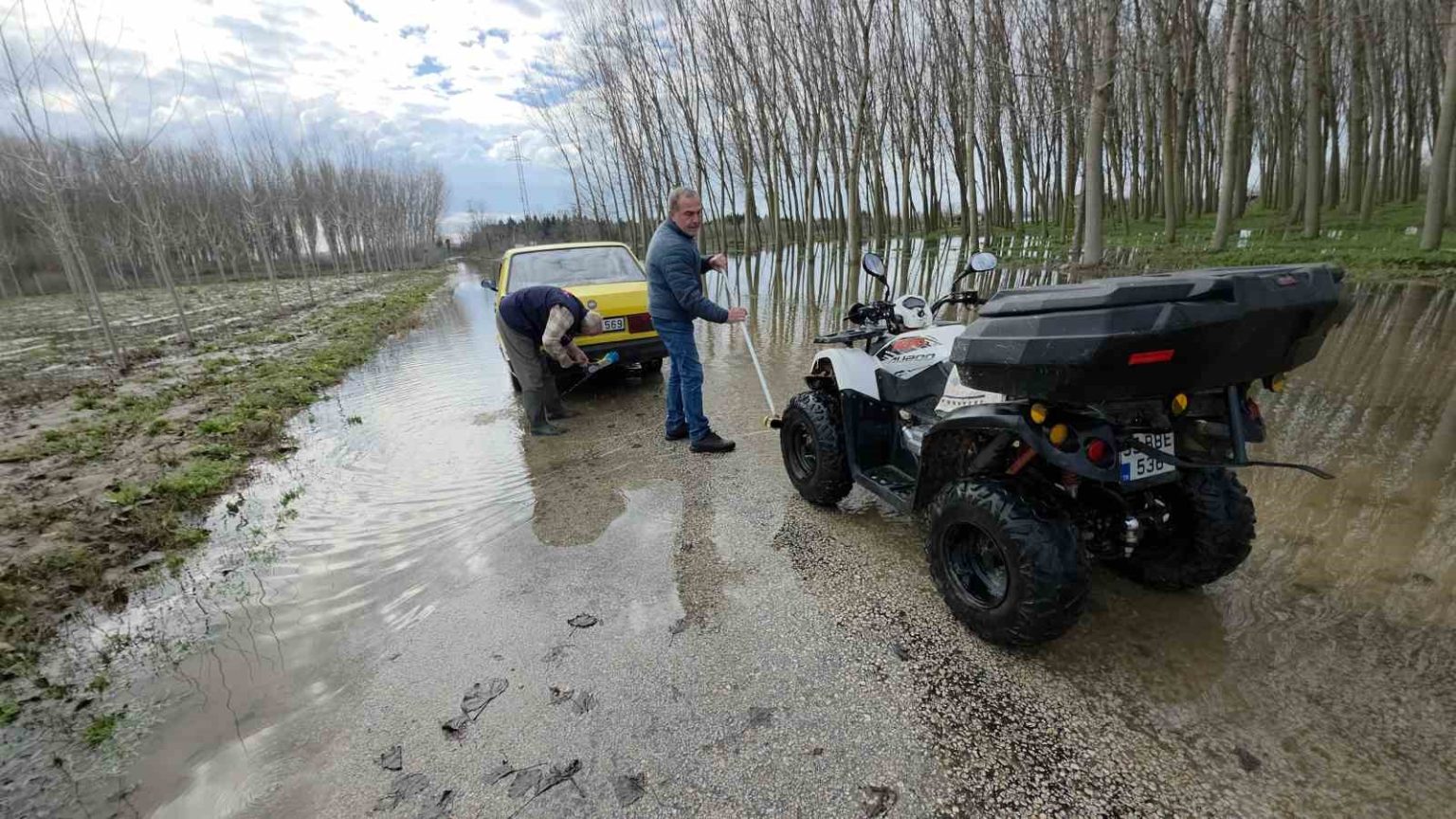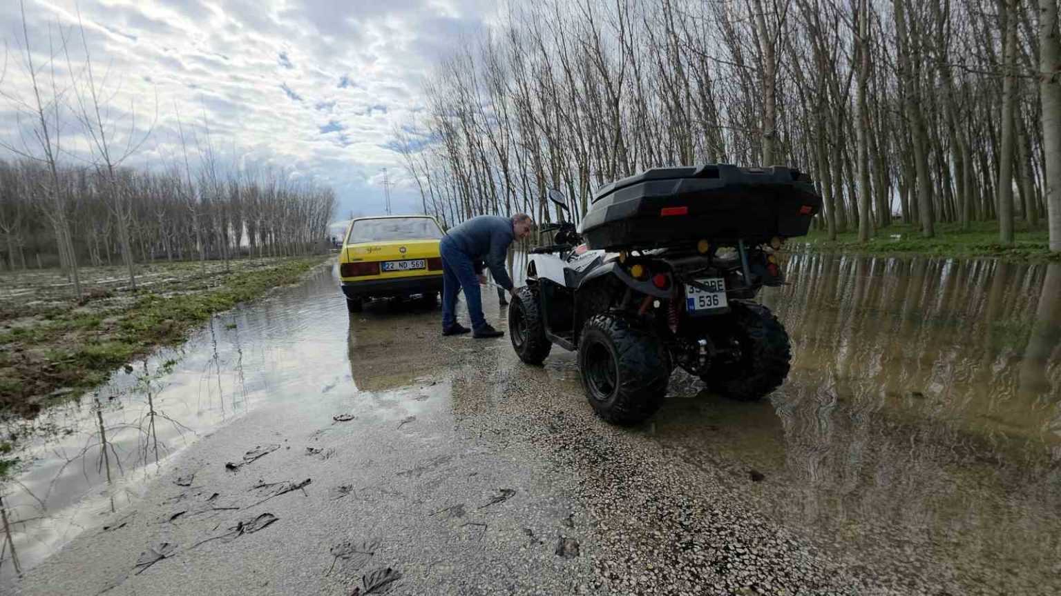 Edirne’de yaşanan su taşkınlarının ardından ortaya çıkan ilginç görüntüler dikkat çekti. Taşkın nedeniyle bahçelerine ulaşmakta zorlanan bazı vatandaşlar, yolda biriken suyu araç ve motosikletlerini yıkamak için kullandı.