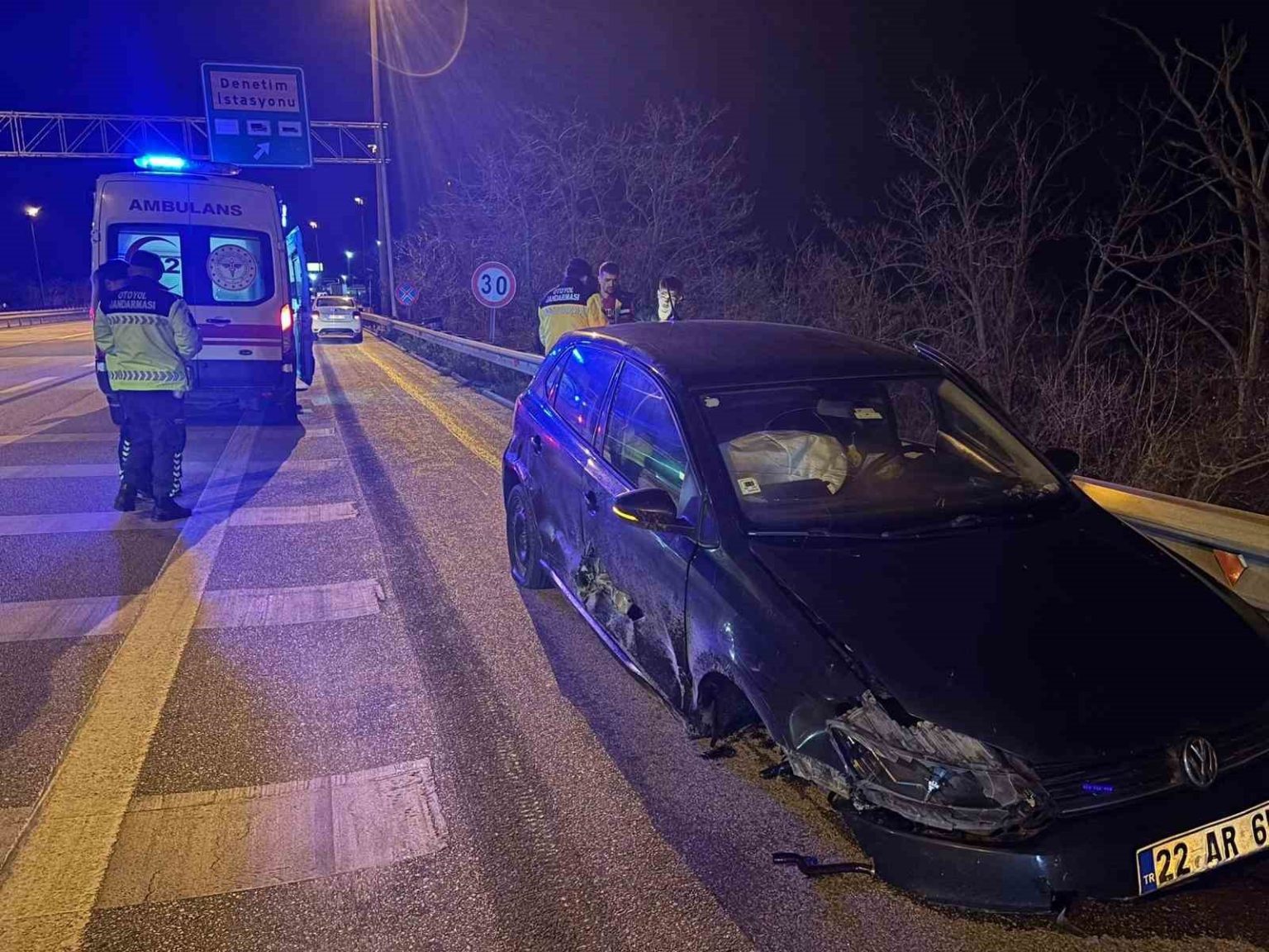 Edinilen bilgiye göre, İstanbul’dan Edirne istikametine ters yönde son sürat ilerleyen A.T.Ç. idaresindeki 22 AR 654 plakalı otomobil, Edirne girişinde tır kantarı mevkiinde kontrolden çıkarak bariyerlere çarptı. Kazada sürücü A.T.Ç. ile araçta bulunan yolcu yaralanırken, yol kenarında bulunan Karayollarında görevli iki personel ile karşı yönden gelen sürücüler kıl payı kurtuldu. İhbar üzerine olay yerine jandarma ekipleri sevk edildi. Ekipler, yol üzerinde güvenlik önlemi alarak, trafiği kontrollü şekilde sağladı. Yaralılar sağlık ekiplerince hastaneye kaldırılırken, yapılan kontrolde sürücünün alkollü olduğu belirlendi.