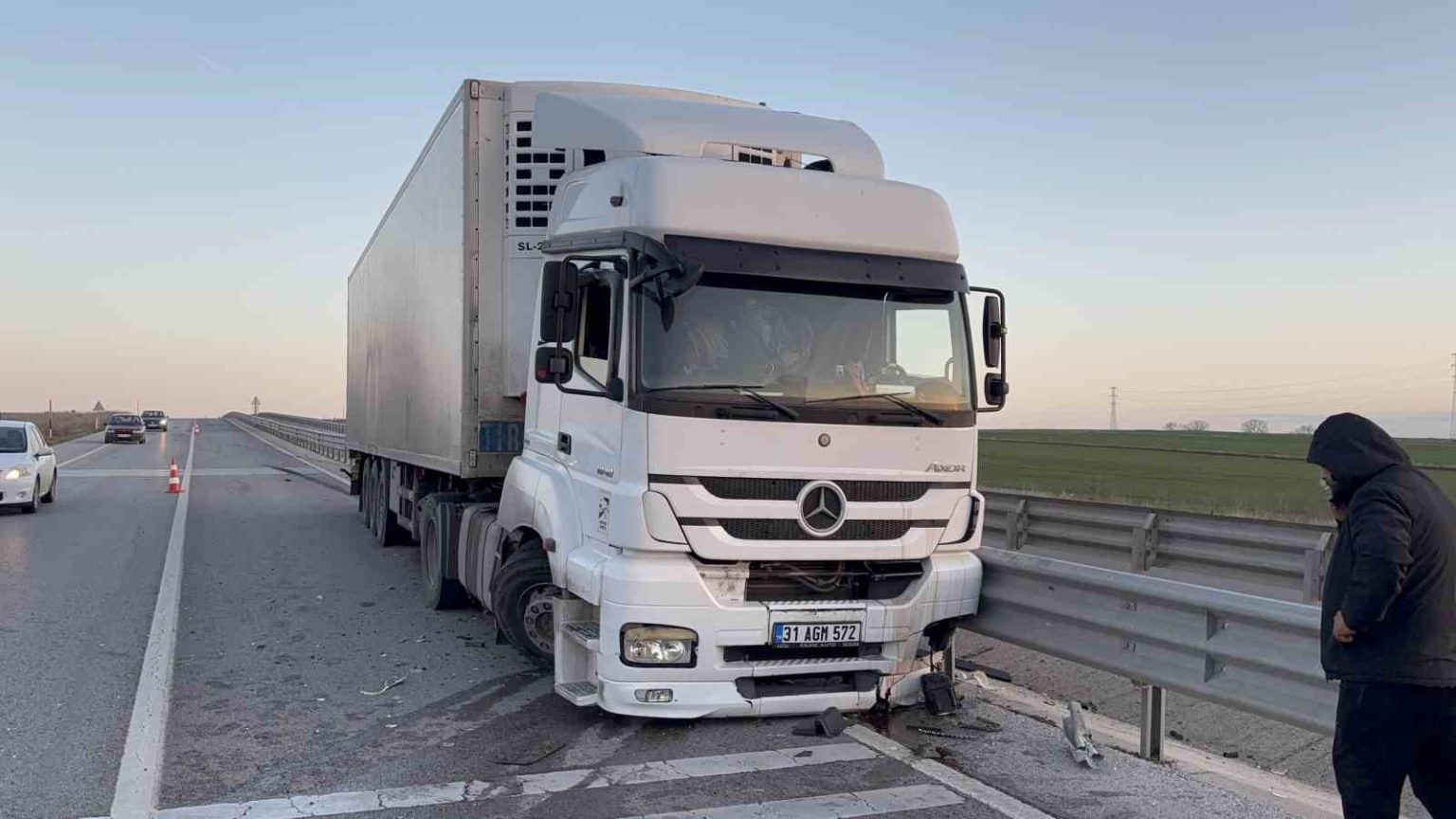 Edirne-Havsa yolunda meydana gelen trafik kazasında 16 ton dolmalık biber yüklü tır bariyerlere çarparak durabildi.