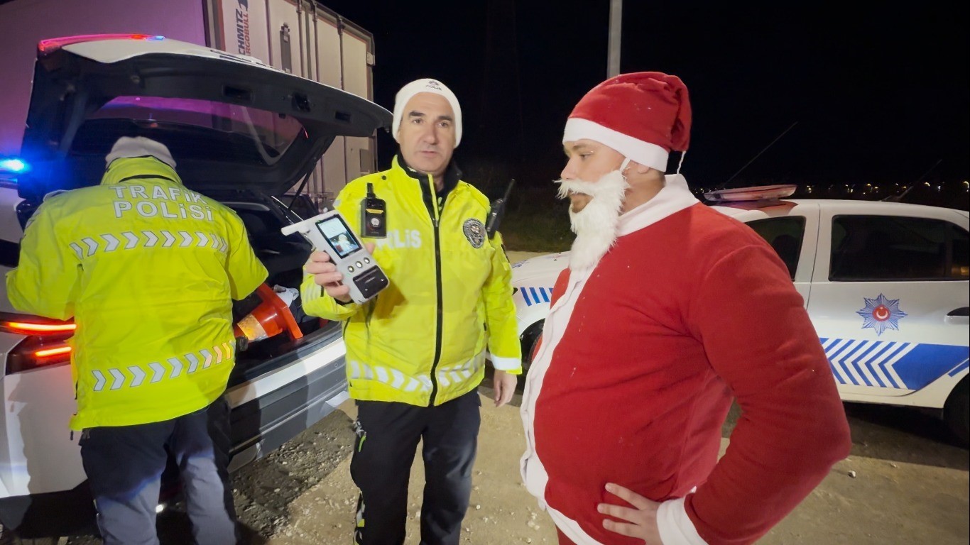 Öte yandan Edirne’de gerçekleştirilen trafik uygulamalarında, Noel Baba kostümüyle direksiyon başına geçen sürücü Mustafa Zobar denetimde durdurulunca renkli görüntüler ortaya çıktı.