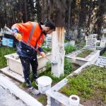 Edremit Belediyesi bayram öncesi mezarlıklarda bakım çalışmalarını sıkılaştırdı