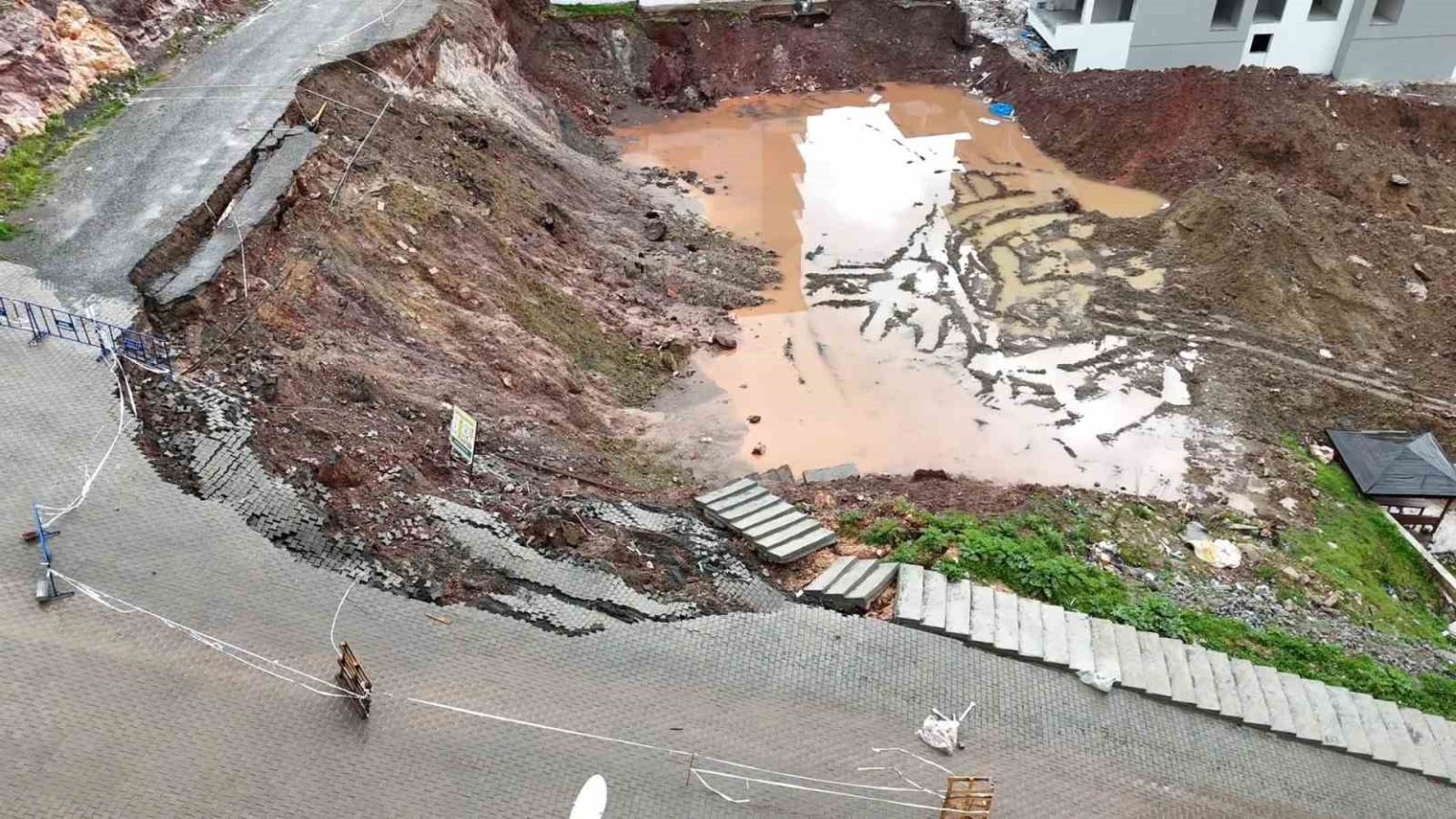 Atatürk Mahallesi 440. Sokak üzerinde bulunan bir inşaat alanında, devam eden temel kazısı sonrasında göçük meydana geldi. Son günlerde etkili olan yağışların toprağı yumuşatmasıyla birlikte yaşanan kaymada, inşaatın yan tarafındaki kaldırım ve yolun bir bölümü zarar görerek temel çukuruna doğru devrildi.