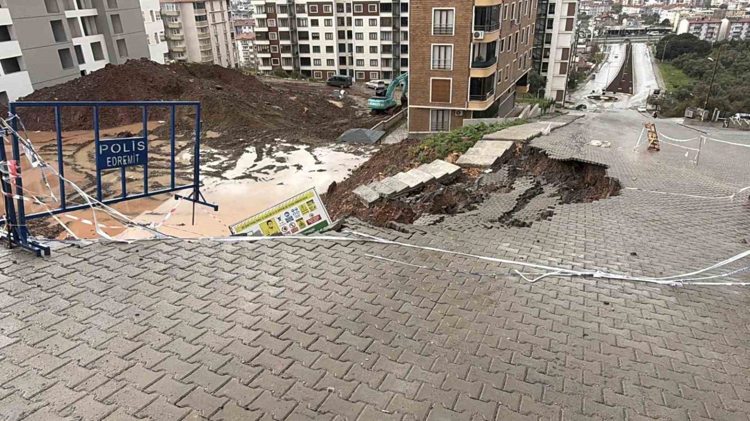 Balıkesir’in Edremit ilçesinde, sağanak yağışların ardından bir inşaat alanında meydana gelen toprak kayması paniğe neden oldu.