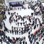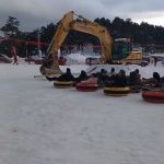Ekskavatörle kızak yapıp soğuk havada halaylarla ısındılar