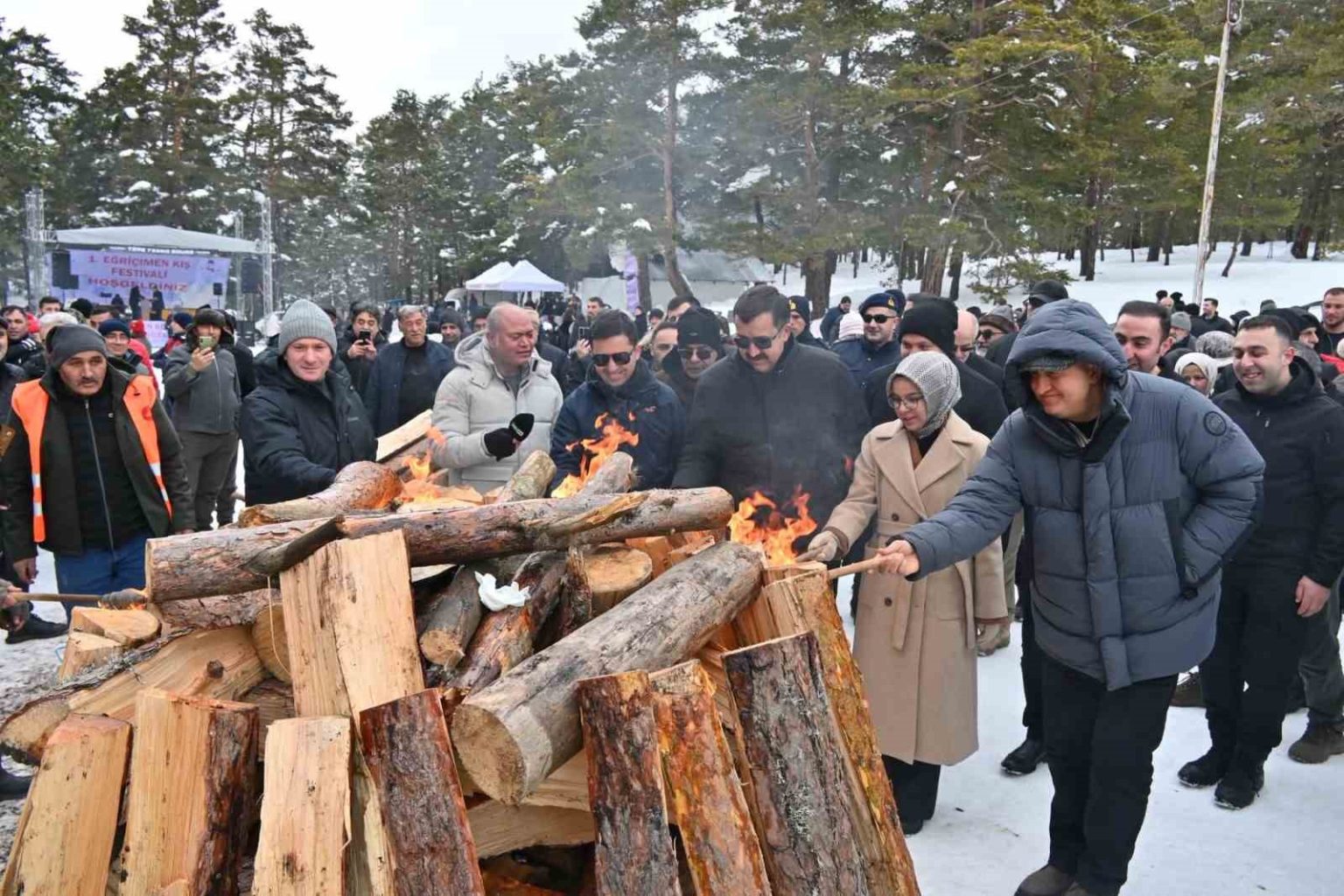 Sivas’ın Karadeniz’e açılan kapısı Eğriçimen Yaylası’nda düzenlenen kış festivali renkli görüntülere sahne oldu. Vatandaşlar ekskavatörle kızak yapıp soğuk havada halaylarla ısındı.