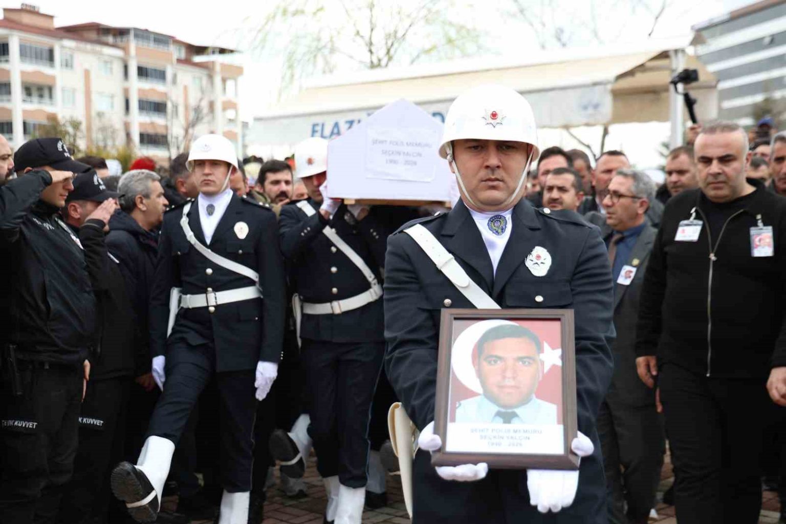 Şehit polis memuru Seçkin Yalçın’ın naaşı İstanbul’da düzenlenen törenin ardından dün memleketi Elazığ’a getirildi. Elazığ Havalimanı’nda düzenlenen karşılamanın ardından şehidin naaşı İmam-Azam Camisi’ne götürüldü. Öğle namazını müteakip kılınan cenaze namazının ardından meslektaşları tarafından omuzlara alınan şehidin naaşı, cenaze aracına konuldu. Geçidin ardından Keban ilçesine bağlı Akçatepe köyüne götürülen Yalçın, göz yaşları içerisinde son yolculuğuna uğurlandı.