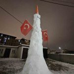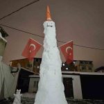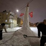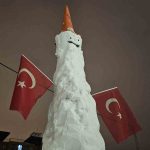 Arda Erulaş ise “Kar, kömür, duba ve bayrak kullandık. Kürek desteğiyle yaptık. Biraz abartalım dedik. Yaklaşık 4 ya da 4 buçuk metre oldu” ifadelerini kullandı.