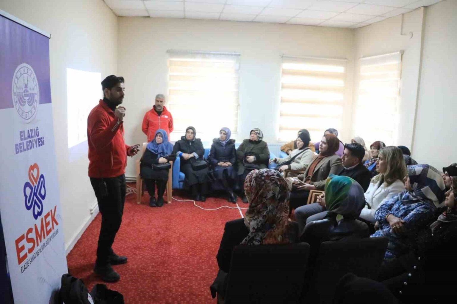 Elazığ Belediyesi, Kızılay Afet Müdahale Eğitim Merkezi iş birliğiyle afet bilinci kazandırma amacıyla kadınlara yönelik teorik ve uygulamalı eğitim programı verildi.
