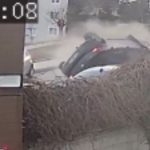 Kaza anı bir iş yerinin güvenlik kamerası tarafından saniye saniye kaydedildi. Görüntülerde otomobillerin çarpıştığı ve bir aracın ters döndüğü anlar yer aldı.