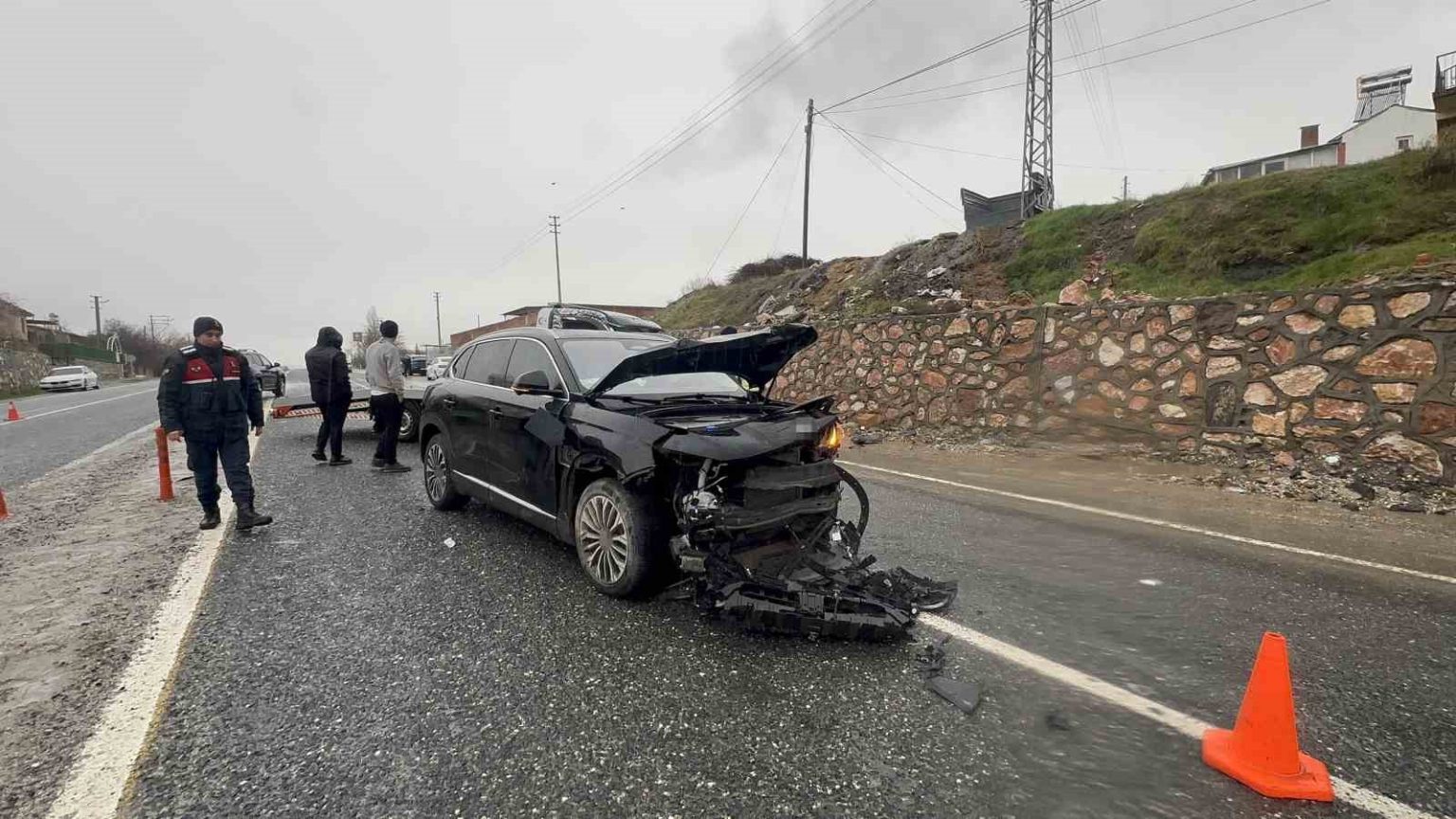 Kaza yerinde yol güvenliği sağlayan jandarma ekipleri, olay yerinde inceleme yaptı.