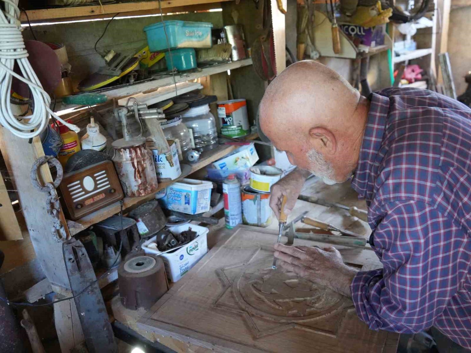 Kastamonu’nun İhsangazi ilçesine bağlı Embiya köyünde yaşayan 73 yaşındaki emekli polis Şaban Meşeoğlu, 1993 yılında emekli olduktan sonra gittiği Hz. Pir Şeyh Şaban-ı Veli Türbesi’nde Arapça “Allah” yazılı levhadan etkilenerek ahşap oyma sanatına yöneldi. Uzun yıllar bomba imha uzmanı olarak görev yapan Meşeoğlu, emekliliğini adeta ahşap oyma sanatına adadı. Hat sanatını ahşaba işleyen ve ahşap oyarak çeşitli kabartmalar yapan Meşeoğlu, yıllar içinde yaptığı eserleriyle evini adeta bir müzeye dönüştürdü. Yaşlılığı sebebiyle sanatına devam edemeyen Meşeoğlu, en büyük hayalinin Cumhurbaşkanı Recep Tayyip Erdoğan’a, Kayı sancağını işlediği ahşap tabloyu hediye etmek oluğunu söyledi.