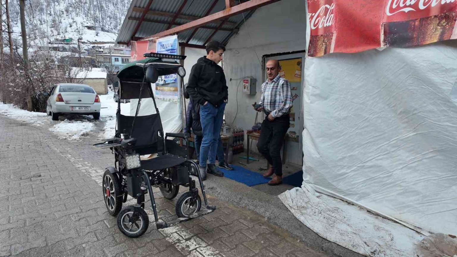 Şırnak’ın Beytüşşebap ilçesinde vatandaş, engelli çocuğu için akülü sandalyeyi arabaya çevirdi. akülü sandalyeye müzik ve ışık yaptıran vatandaş, ayna ve koruma sensörü ile sandalyeyi araç yaptı.