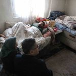 Sobanın ısıttığı tek odada çocuklarına bakıyor