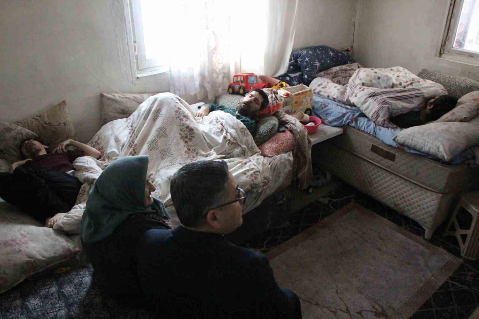 Sobanın ısıttığı tek odada çocuklarına bakıyor