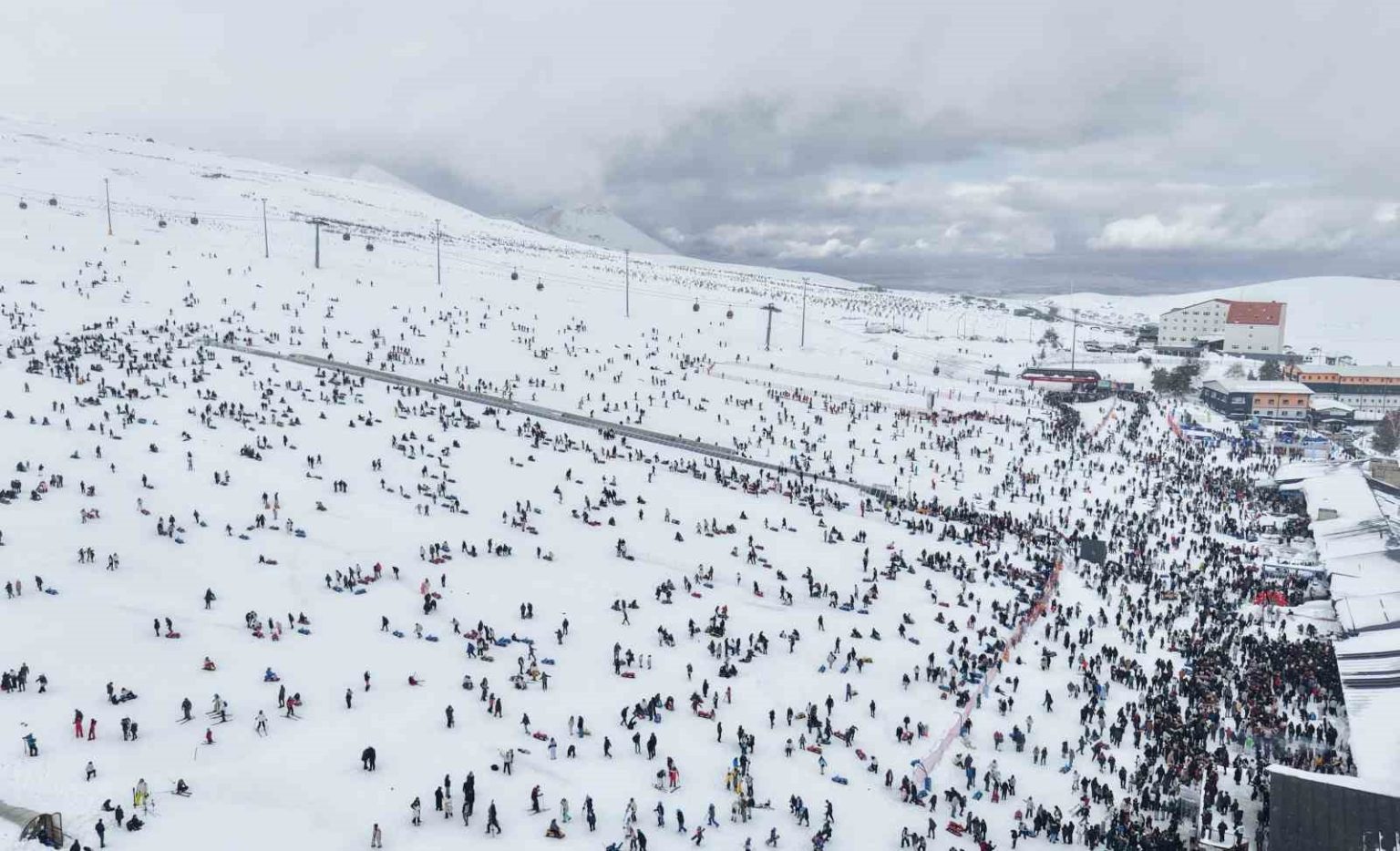 Sezonun tüm hızıyla devam ettiği Türkiye’nin önemli kış turizmi merkezlerinden Erciyes’te, hafta sonunu geçirmek isteyen vatandaşlar hem pistlerde hem de teleferiklerde yoğunluk oluşturdu. Kış aktiviteleri için Kayseri’yi tercih eden yerli ve yabancı turistler karın tadını çıkardı. Erciyes Kayak Merkezi’nde oluşan yoğunluk ise dron ile görüntülendi. Erciyes A.Ş. Yönetim Kurulu Başkanı Zafer Akşehirlioğlu, sezonun çok iyi geçtiğini ifade ederek, “Keyifli Erciyes günleri devam ediyor. Tüm Türkiye’de etkili olan rüzgar Erciyes’te de biraz etkili oldu. Hızlı bir şekilde hemen aksiyon alıp gelen misafirlerimize kayak yaptırmaya devam ediyoruz. Bugün de bir hafta sonu ve müthiş kalabalık. Kayseri Büyükşehir Belediyemizin yapmış olduğu yatırımlarla Türkiye’nin en geniş, en modern kayak merkezi haline getirdiğimiz Erciyes Kayak Merkezi’nde misafirlerimizle aktivitelerle, festivallerle, kış sporlarıyla hep birlikte eğleniyoruz. Kayak hocalarımıza, işletmecilerimize, otellerimize teşekkür ediyorum. Muhteşem bir kış dönemi geçiriyoruz. Herkesi Erciyes’e davet ediyoruz” dedi.