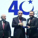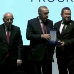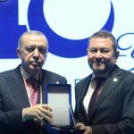 Birlik Vakfı’nın 40’ıncı kuruluş yıl dönümü töreninde, vakfa sunduğu katkılar nedeniyle İzmirli iş adamı Nazım Torbaoğlu’na plaketini Cumhurbaşkanı Recep Tayyip Erdoğan takdim etti.