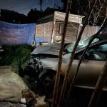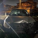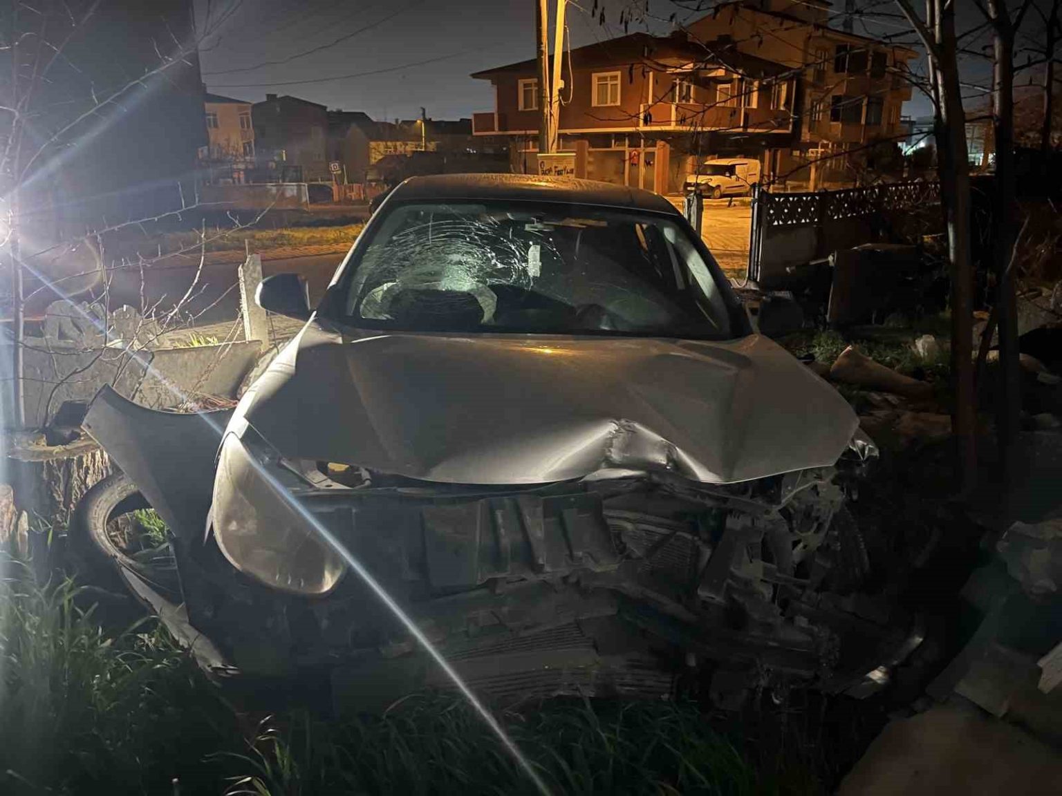 Tekirdağ’ın Ergene ilçesinde gece yarısı kontrolden çıkan otomobil evin bahçesine daldı.