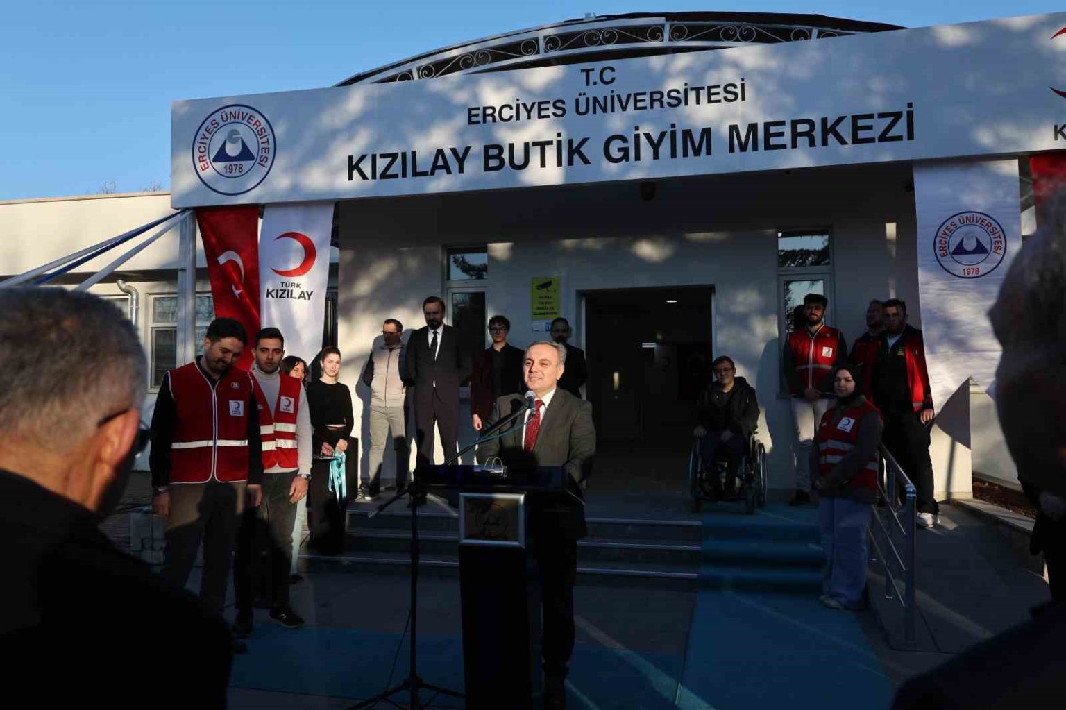 Erciyes Üniversitesi (ERÜ) ile Kızılay Kayseri Şubesi arasında imzalanan protokol ile ihtiyaç sahibi öğrencilere kıyafet desteğinde bulunmak amacıyla hayata geçirilen Kızılay Butik Giyim Merkezi’nin açılışı gerçekleştirildi.