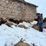 Aşılarını da yaptım ben. Zehirleme aşısını, karma aşısını, çiçek aşısını yapmışım, şap aşısını yaptık. Yani hayvanlarımıza çok dikkat ediyorum. Bu yemi de 2 aydır ben veriyorum, fabrikadan alıyoruz süt besi olarak. Koyunlarımın işte kuzuları var, yavruları var. 2 aylık yavrular süt emiyordu. Şu anda hayvanlar içeride aç. 300 tane koyunun 80 tanesi olduğu gibi yığıldı kurunun başına. Bunların kuzuları da açlar.”