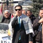 “Kudüs’ün ve Mescid-i Aksa’nın özgürlüğüne sahip çıkmak, mazlum Filistin halkının yanında olduğumuzu haykırmak için buradayız” diyen ESTP Başkanı Kavaz, “İslam coğrafyasının dört bir yanında, çocuklar tonlarca ağırlıktaki bombaların hedefi oluyor. Dün Bosna’da, Çeçenistan’da, Afganistan’da, Arakan’da, Suriye’de ve Irak’ta dökülen kan; bugün Sudan’da, Lübnan’da, Doğu Türkistan’da, Yemen’de, Gazze’de ve İran’da dökülmeye devam ediyor. Coğrafyalar değişiyor, takvimler değişiyor ancak ölenler hep aynı; masum çocuklar, kadınlar ve siviller. Fail belli, silahlar belli, bombaların üzerindeki imzalar belli. ABD ve İsrail menşeli bombalar şehirleri yerle bir ederken, bizler hâlâ büyük düşmanımız olan “parçalanmışlığı” besliyoruz. Emperyalist güçler İslam coğrafyasını adım adım işgal edip, çocuklarımızı hayattan koparırken; anne babalar evlatsız, evlatlar anne babasız kalırken, bizler enerjimizi ve birliğimizi mezhep kavgaları, etnik tartışmalar ve çekişmelerimizle tüketmeyelim” dedi.