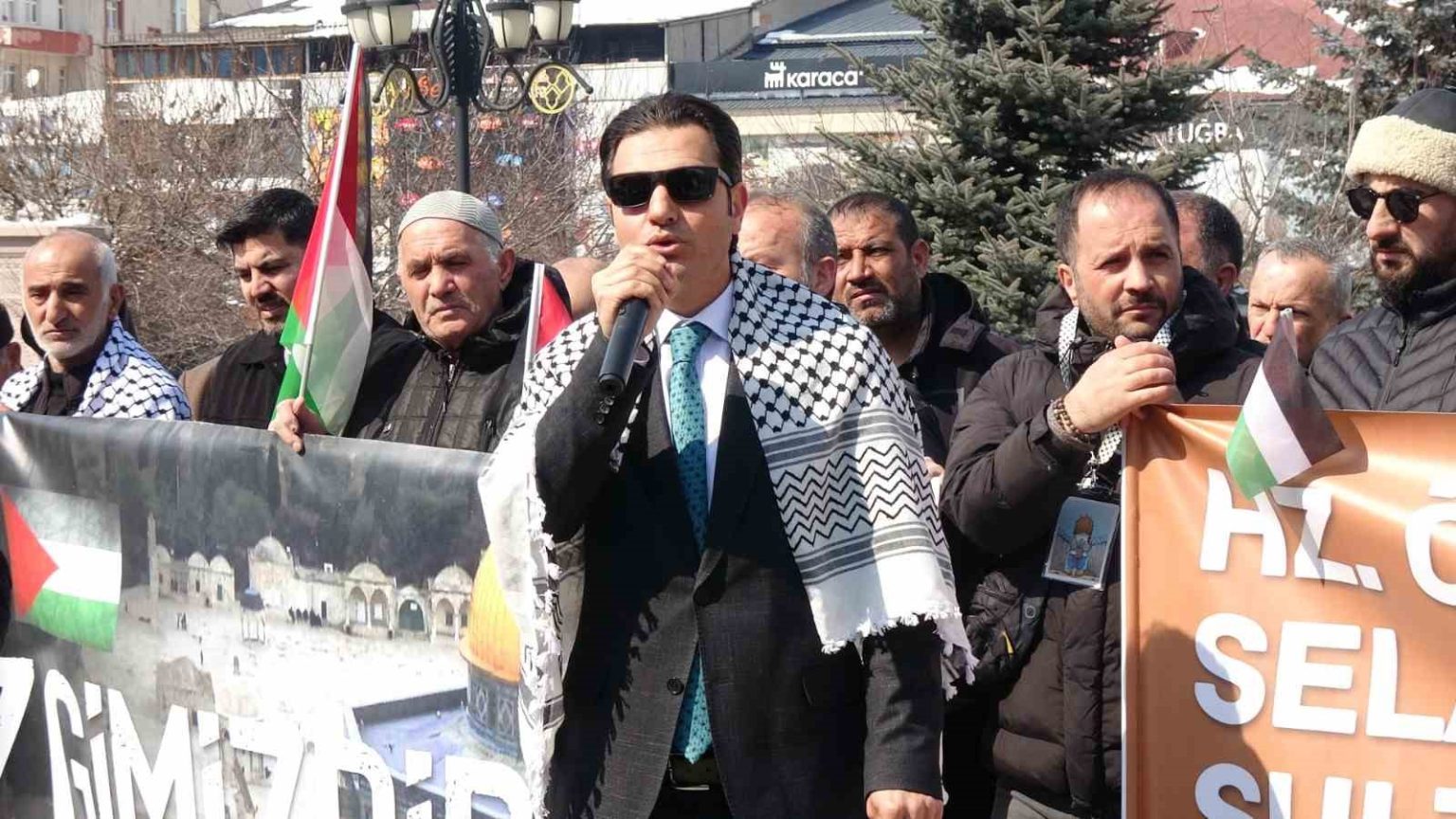 Erzurum’da Sivil Toplum Platformu (ESTP) üyeleri Cuma namazı sonrası Kudüs ve Aksa’nın özgürlüğü için yürüdü.