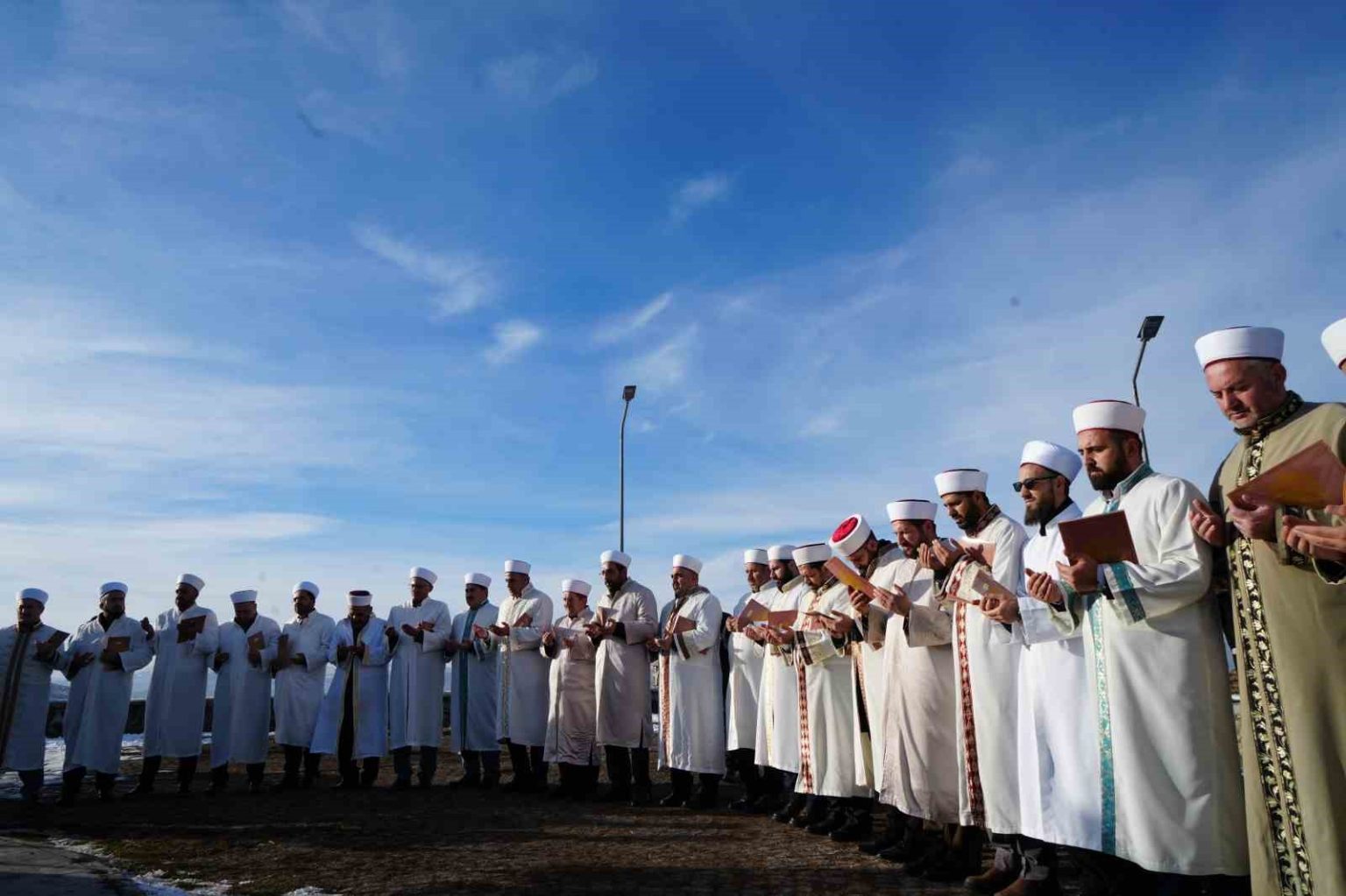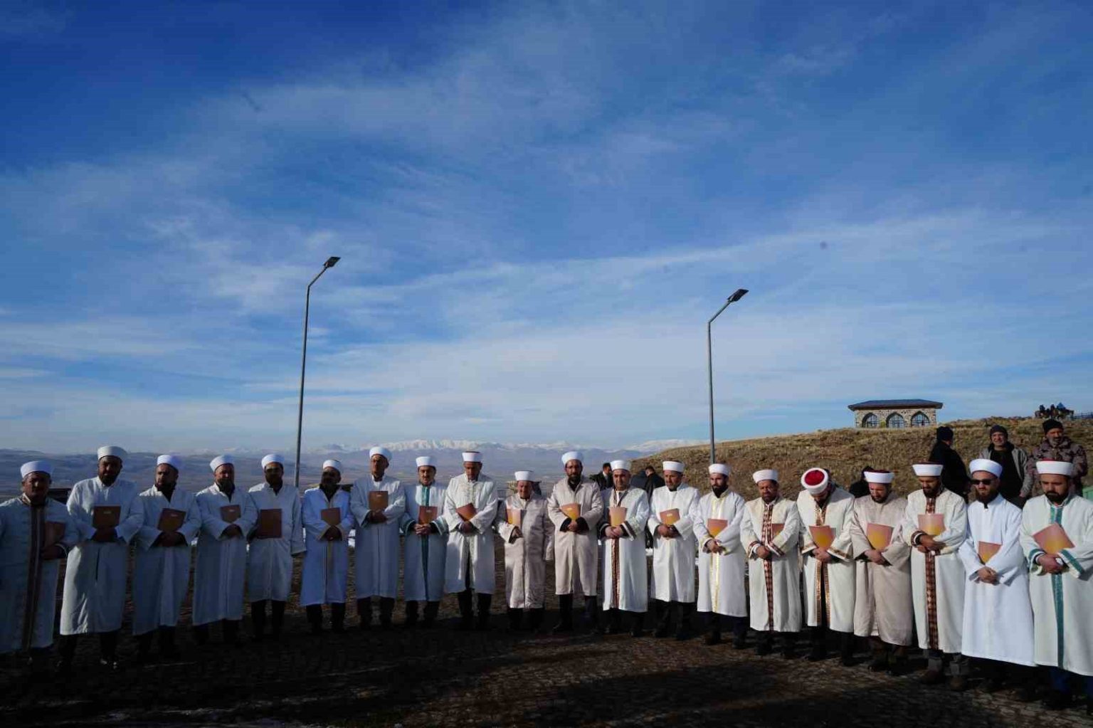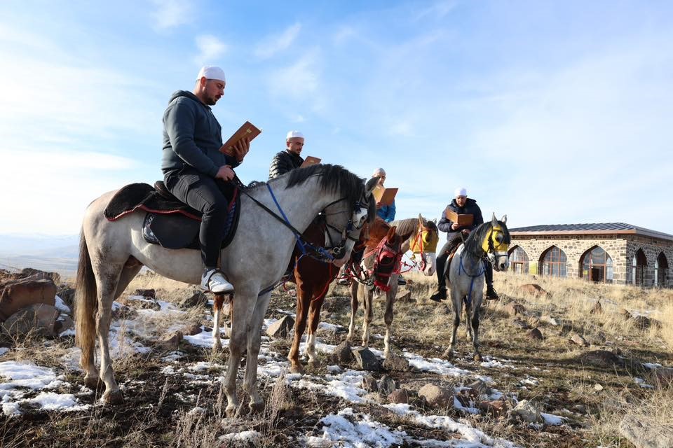 Camilerde sabah namazı ile birlikte hatim indirilmeye başlanan Erzurum’da, bugün Pir Ali Baba Türbesi’nde de bir program düzenlendi. 19 Aralık 2025-15 Ocak 2026 tarihleri arasında devam edecek olan 1001 Hatim geleneği, her yıl Dutçu köyü yakınlarındaki tepede bulunan Pir Ali Baba Türbesi’nde başlatıldı. Pir Ali Baba Türbesi’nde düzenlenen törende tekbirler eşliğinde atlar üzerindeki hafızlar, Pir Ali Baba’nın yaşadığı dönemde Kur’an-ı Kerim okuyarak şehri dolaşmasını temsili olarak canlandırdı. Hafızlar hilal şeklinde oluşturdukları düzenle ellerindeki cüzler ile ’1001 Hatim’i bu yıl başlatmış oldu.