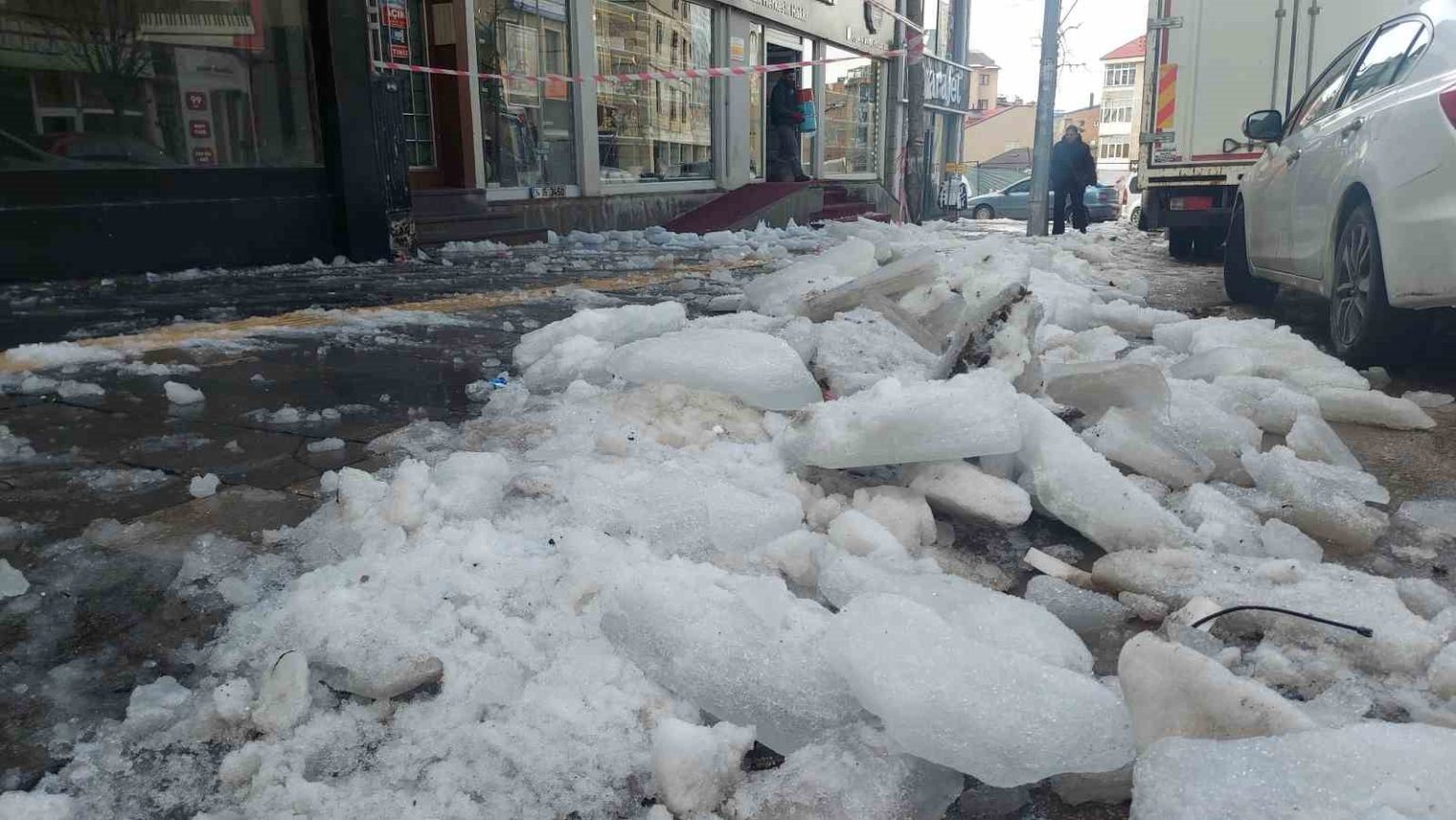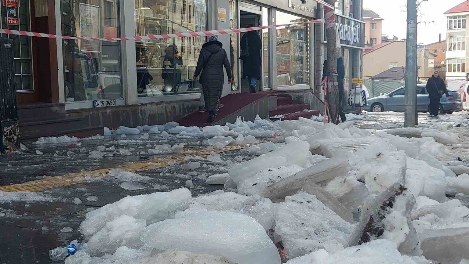 Erzurum’da çatıdan düşen kar ve buz kütleleri tehlike saçıyor