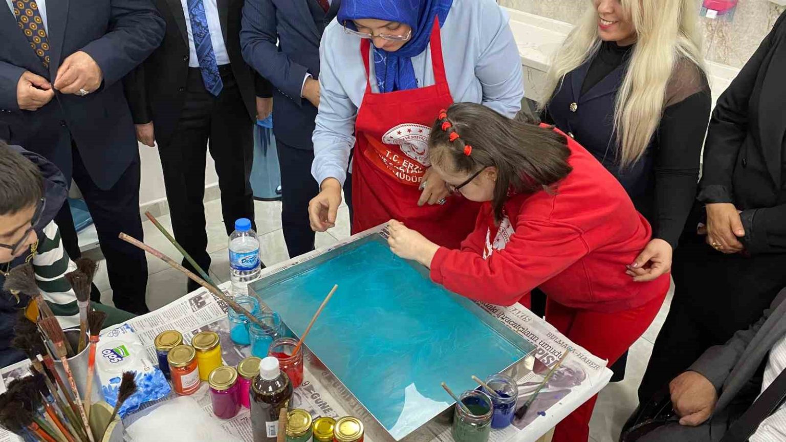 Erzurum Aile ve Sosyal Hizmetler İl Müdürlüğü tarafından Aziziye Engelli Aktif Yaşam Merkezi’nde düzenlenen programda, otizmli bireyler okuma-yazma ve müzik atölyelerinin yanı sıra resim, çini ve boyama etkinliklerine katıldı. Etkinlik boyunca renkli ve anlamlı görüntüler oluşurken, çocuklar otizmi simgeleyen boyalı tabaklara ellerini batırarak hazırlanan panoya el izlerini bıraktı.