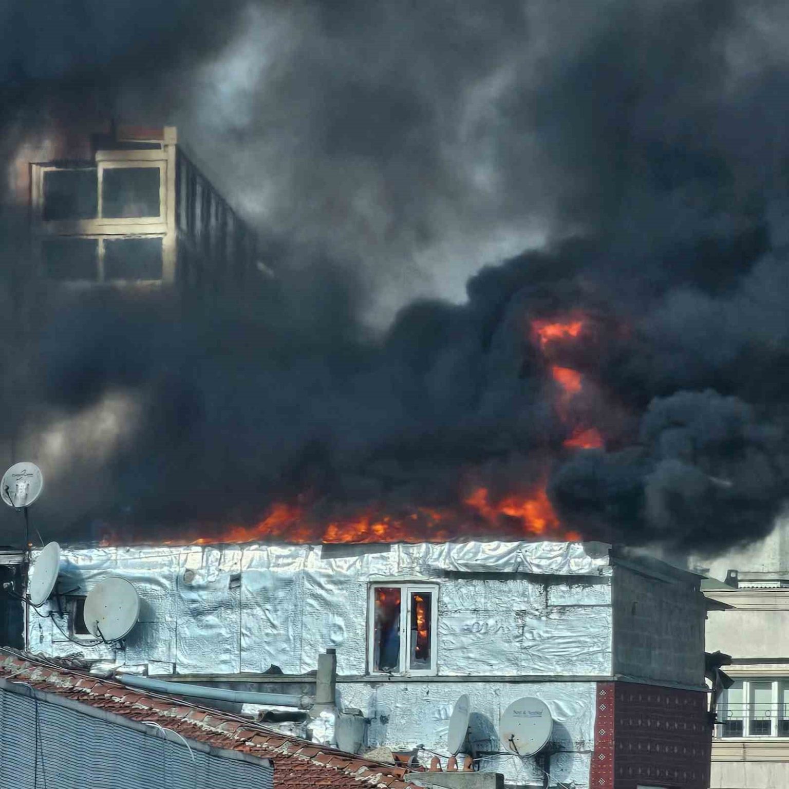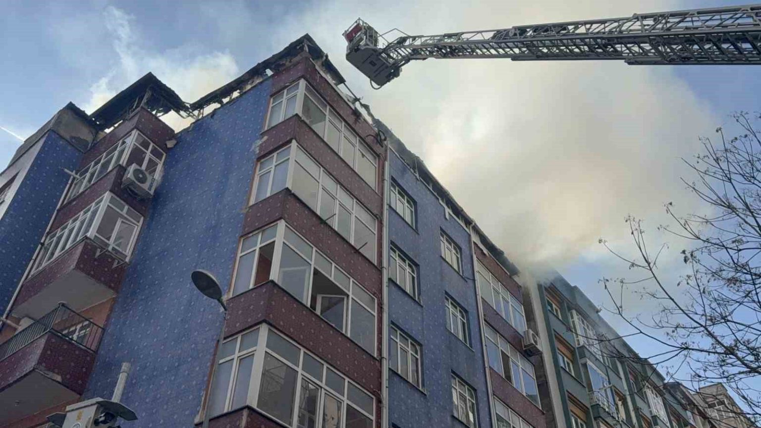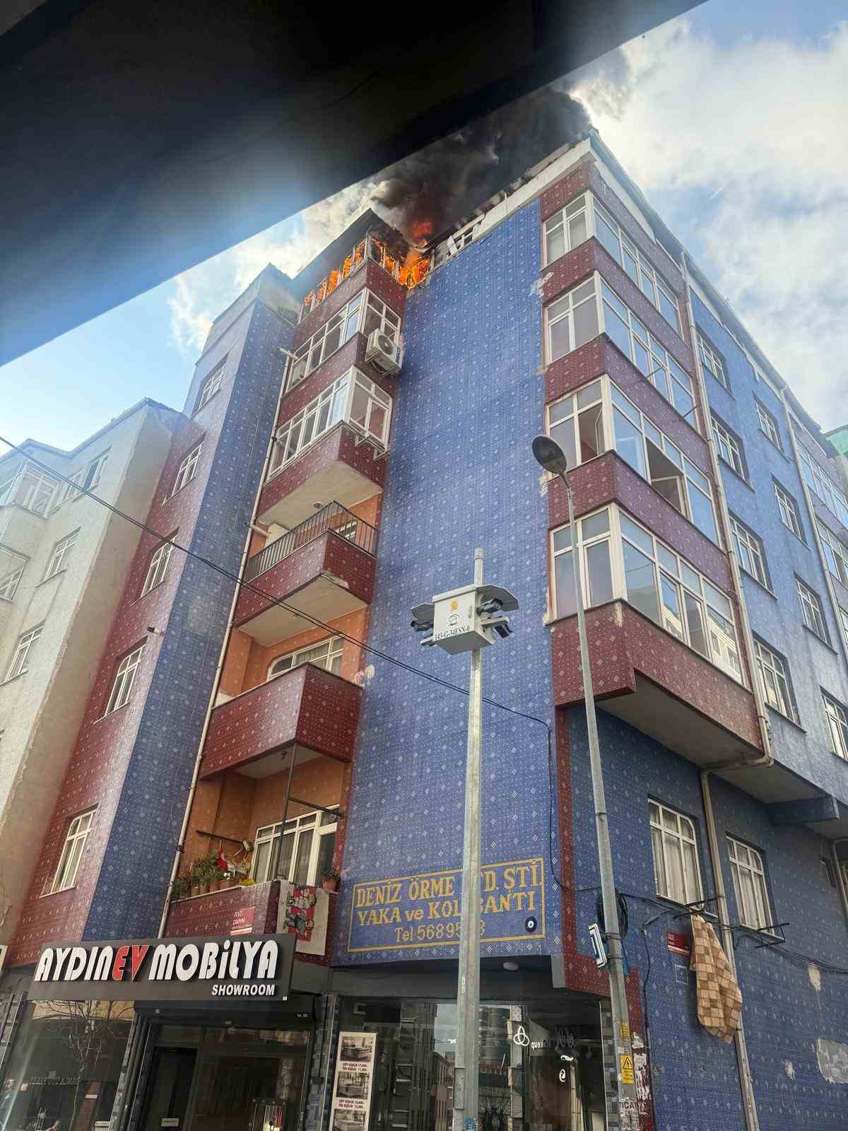 Esenler’de binanın en üst katında çıkan yangında alevler gökyüzüne yükseldi