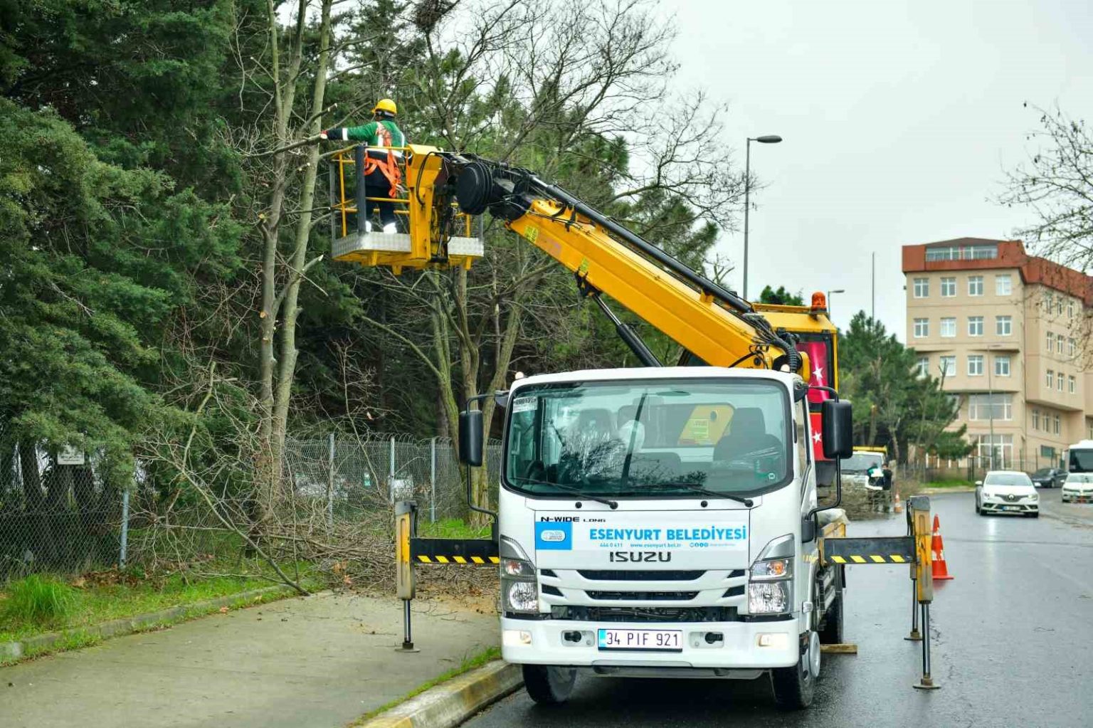 Esenyurt Belediyesi, bahar mevsimi öncesinde ilçe genelinde ağaç budama çalışmalarını sürdürüyor.