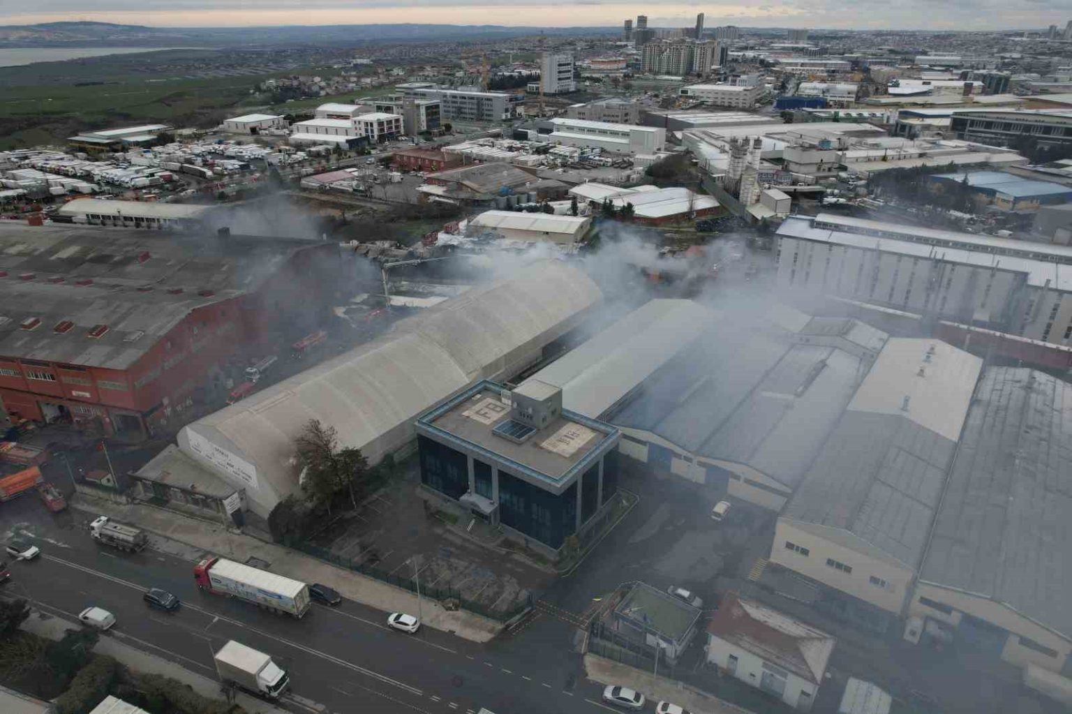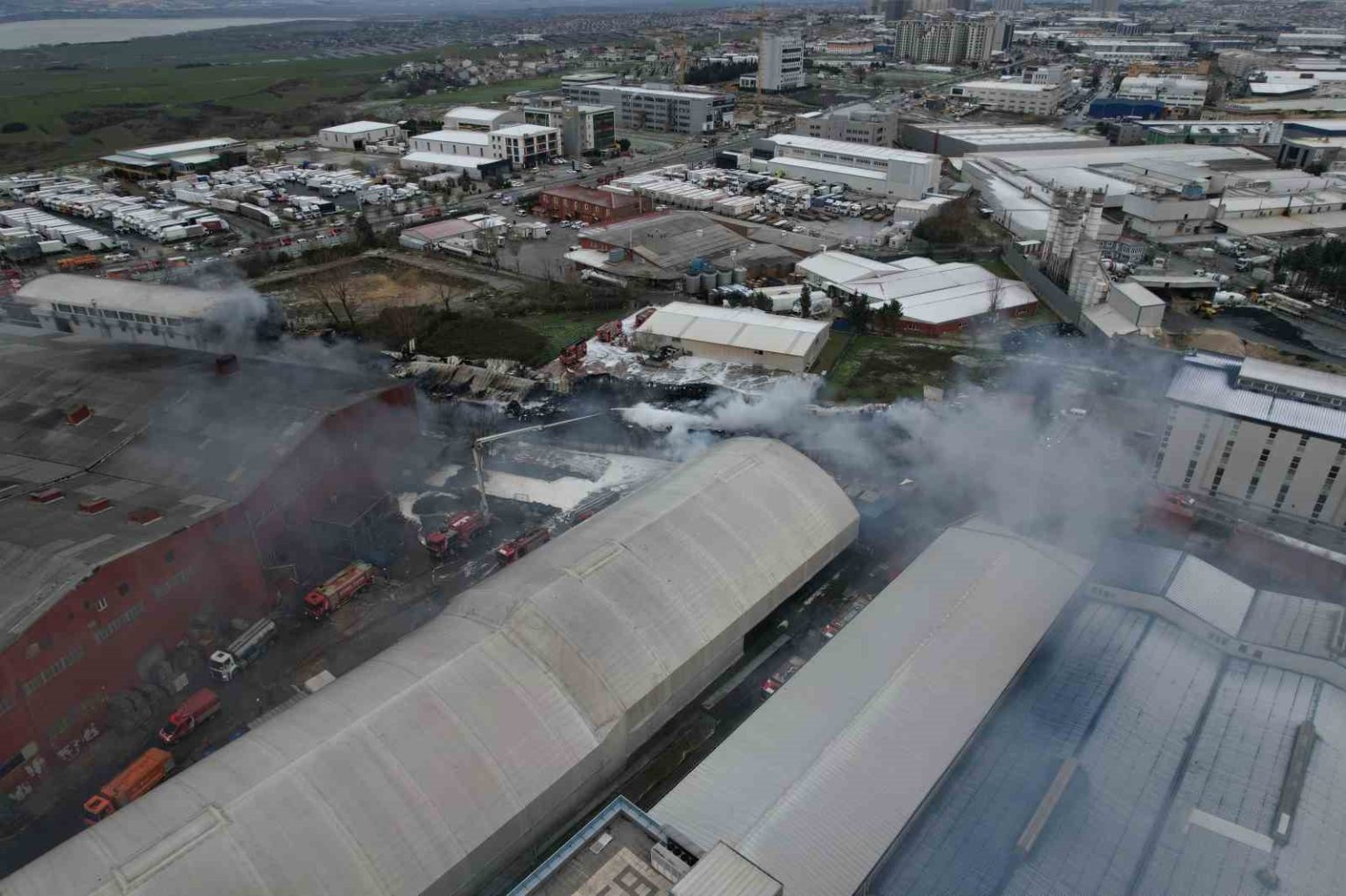 Esenyurt’ta devam eden fabrika yangını havadan görüntülendi