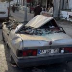 Yaşanan fırtına anlarını anlatan Mehmet Avşar, “Ben işyerimin önündeydim, ne olduğunu anlayamadım. Bir anda çatı uçtu, park halindeki iki arabanın üstüne düştü. O sırada yoldan geçenler vardı, şans eseri burayı geçmişlerdi. Çok şükür onlara bir şey olmadı, olan mala oldu. Bir anda başladı, toz duman içinde kaldı ortalık” dedi.
