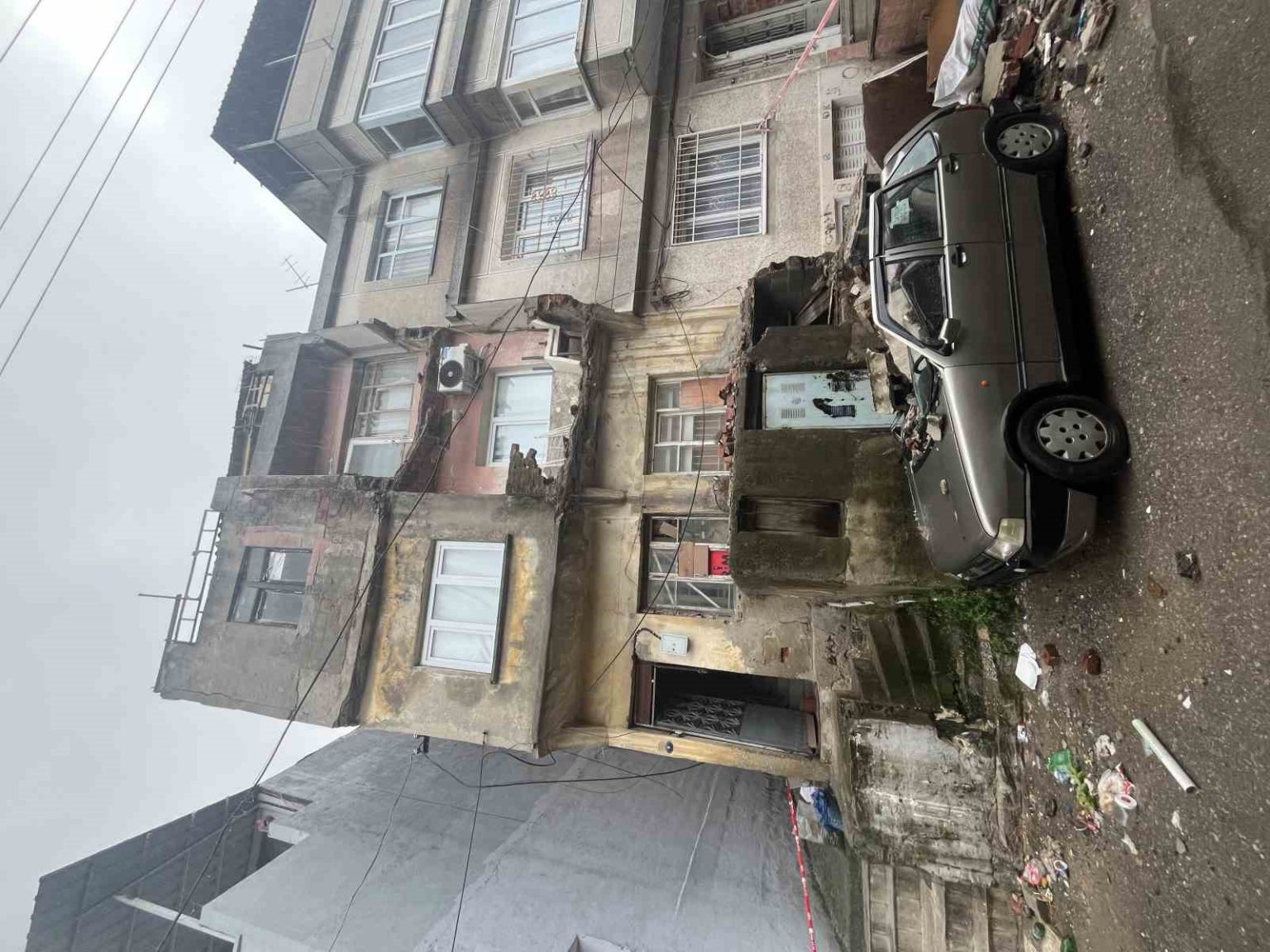 Eski binanın balkonundan düşen beton parçaları bir otomobili kullanılamayacak hale getirdi