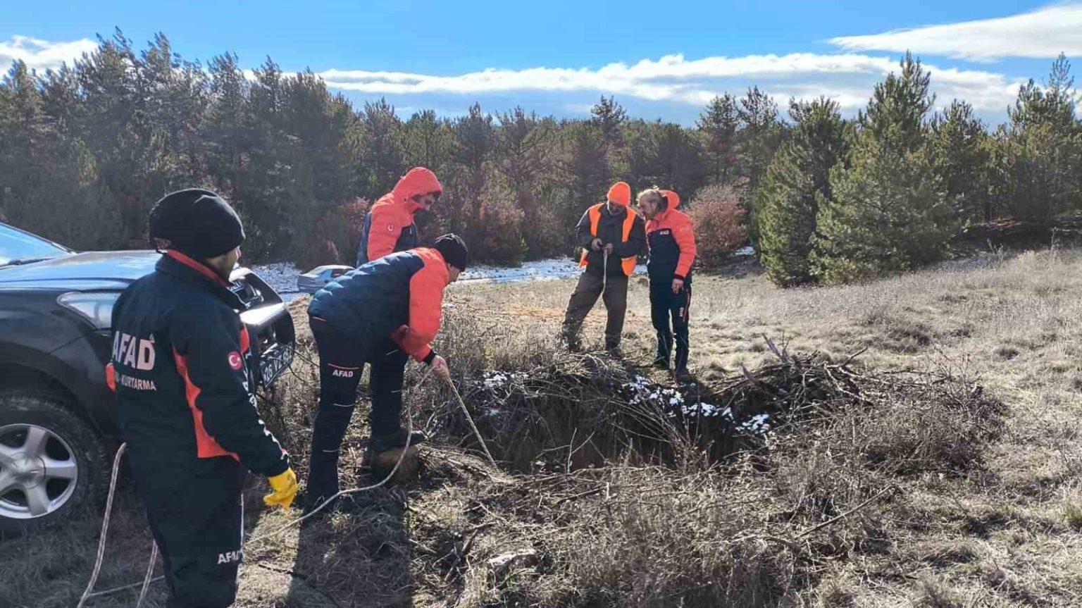 Odunpazarı ilçesi Çamlıca-Yörükkırka mevkiinde avlandığı esnada yaklaşık 12 metre derinliğindeki çukura düşen köpek için AFAD ekipleri seferber oldu. Saat 12.32’de gelen ihbar üzerine bölgeye hızla intikal eden Eskişehir İl Afet ve Acil Durum Müdürlüğü bünyesindeki 2 araç ve 5 personel, derin çukurda mahsur kalan hayvanı çıkarmak için teknik çalışma başlattı. Ekiplerin titizlikle yürüttüğü operasyon neticesinde saat 13.40’ta bulunduğu yerden çıkarılan köpek sahibine teslim edildi.